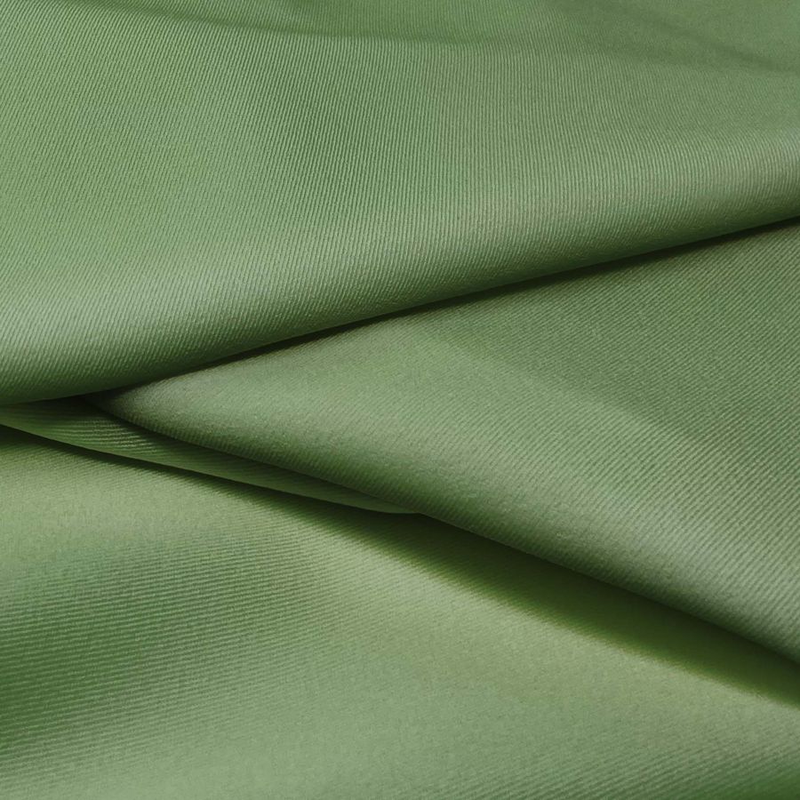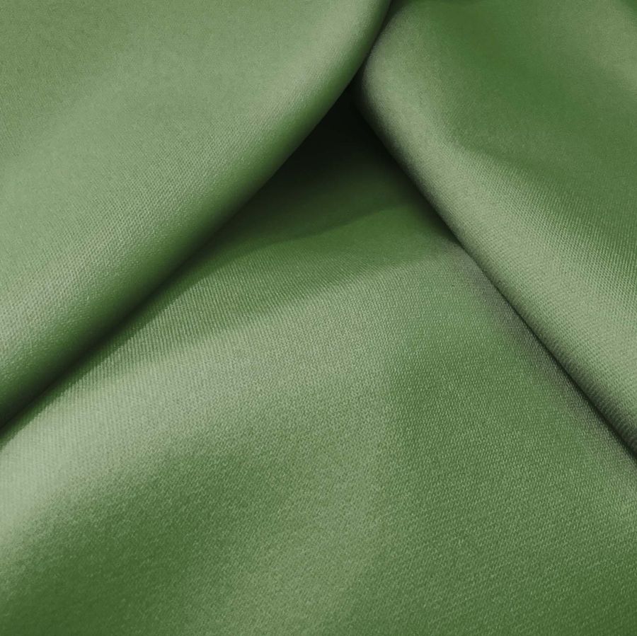 La tela base de esta descripción es la Sarga Bielástica - Lisboa, con un 97% de poliéster y un 3% de elastano que la hace elástica y rugosa al tacto. El color liso impreso en la tela es Verde Reseda, con una composición de tinta cyan 67, magenta 36, yellow 78 y negro 24, correspondiente al CMYK 67 36 78 24. Este color es un verde suave y primaveral que combina magníficamente con tonos marrón y dorado. La tela está impresa con el color liso a una sola cara por impresión digital textil, lo que significa que el tejido no está tintado, sino que se ha impreso el diseño directamente en una de sus caras.