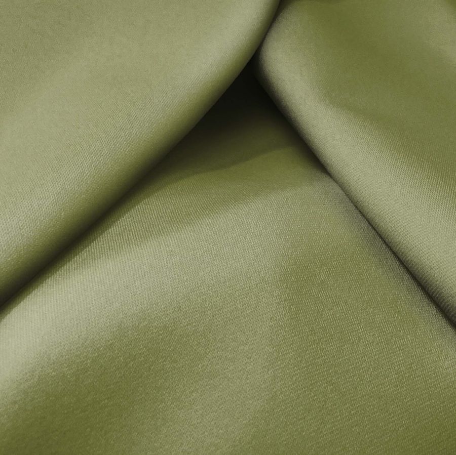 La tela base es la Sarga Bielástica - Lisboa, compuesta por 97% poliéster y 3% elastano, con un gramaje de 209 gr/m2 y un ancho de 150 cm. El color liso impreso es Verde Cocodrilo con una mezcla de tintas en CMYK de 54 37 75 25. Este color evoca la naturaleza y aporta frescura al ambiente, combinando perfectamente con tonos tierra y blancos.