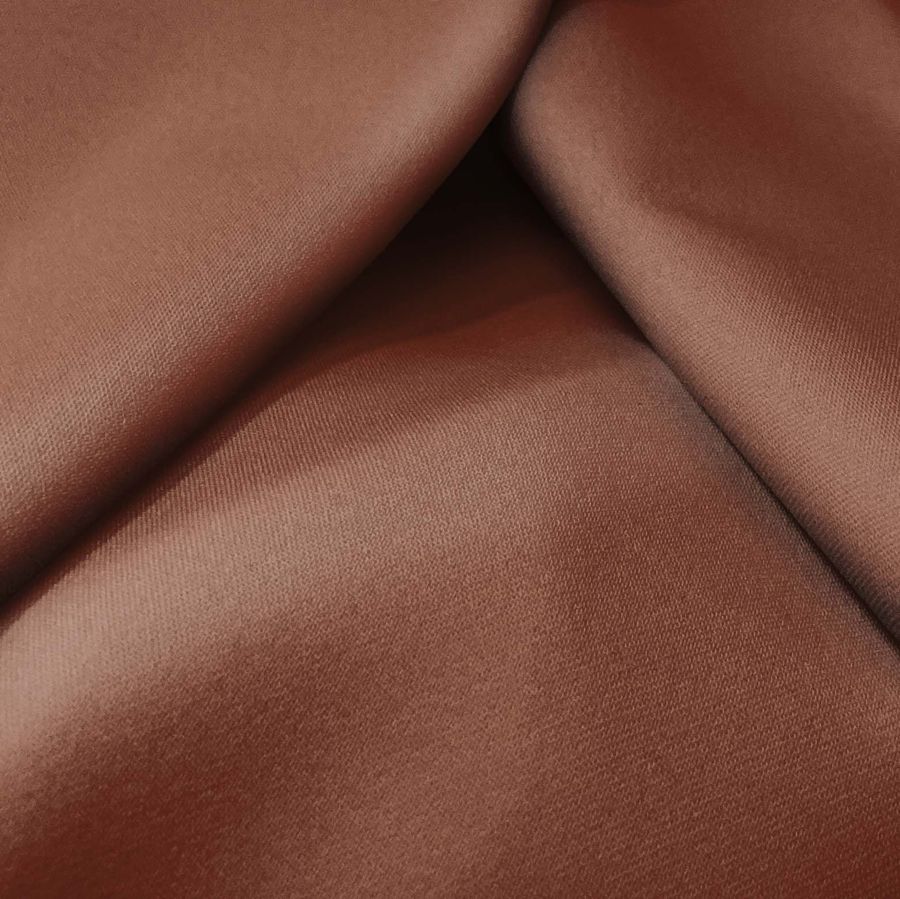 La tela base Sarga Bielástica - Lisboa es un tejido de composición 97% poliéster y 3% elastano, con un gramaje de 209 gr/m2 y un ancho de 150 cm. Su color liso impreso CMYK (36 71 75 50) es un tono rojo-marrón que combina muy bien con colores neutros como el blanco, negro y gris, así como con tonos tierra como el beige y el marrón. La tela está impresa con el color liso a una sola cara por impresión digital textil.