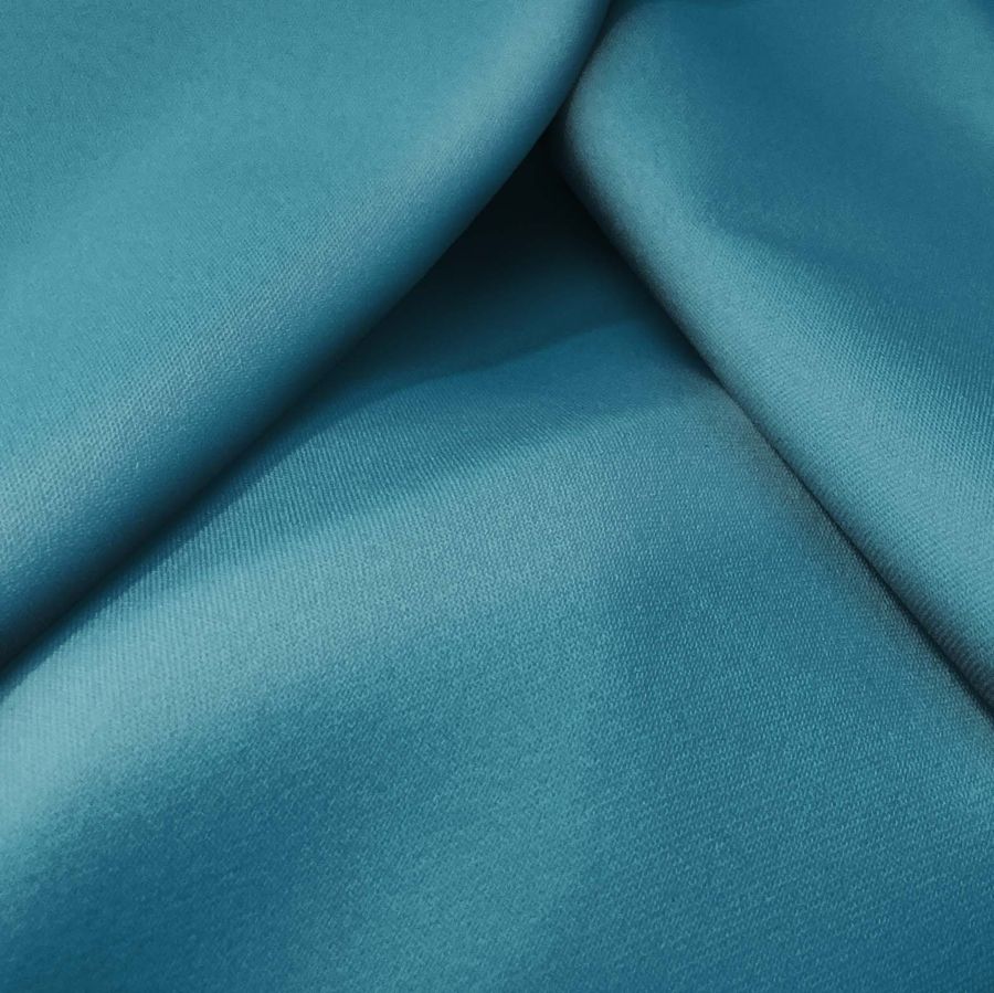 La tela base Sarga Bielástica - Lisboa presenta una composición de 97% poliéster y 3% elastano, con un gramaje de 209 gr/m2 y un ancho de 150 cm. En cuanto al color liso impreso, su contenido de CMYK es de 82 39 37 21, siendo un tono de azul agua profundo y vibrante. Este color evoca tranquilidad y serenidad, al mismo tiempo que transmite energía y vitalidad.