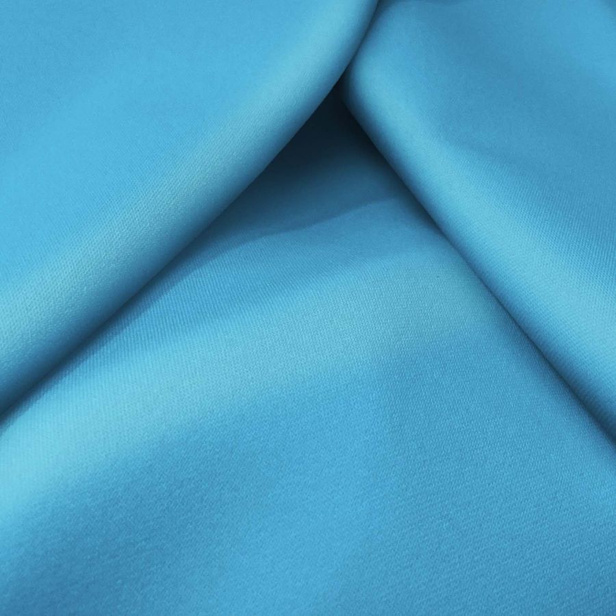 La tela base es la Sarga Bielástica - Lisboa, compuesta por 97% de poliéster y 3% de elastano, con un gramaje de 209 gr/m2 y un ancho de 150 cm. El color liso impreso es un tono Azul Bebé, con un contenido de la tinta Cyan de 64, la tinta Magenta de 15, la tinta Yellow de 0 y la tinta Black de 0, lo que se representa en la impresión digital textil con el CMYK 64 15 0 0. La combinación de estas tintas da como resultado un tono suave y delicado que transmite calma y tranquilidad. Combina muy bien con tonos neutros como el blanco o el gris, así como con tonos cálidos como el rosa pálido o el dorado.