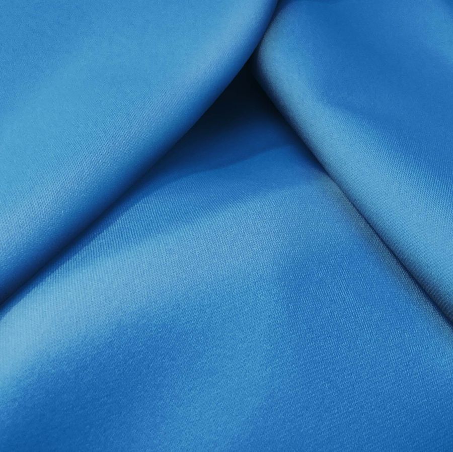 La Sarga Bielástica - Lisboa es una tela con un alto porcentaje de poliéster y un 3% de elastano, lo que le permite ser elástica y rugosa al tacto. La tela está impresa con un color liso que combina el azul y el azul celeste, con un contenido de 84% de tinta cian, 49% de tinta magenta, 4% de tinta yellow y 0% de tinta black, logrando un CMYK de 84 49 4 0. Esta combinación de colores secundarios le otorga una sensación refrescante y relajante, perfecta para cualquier temporada.