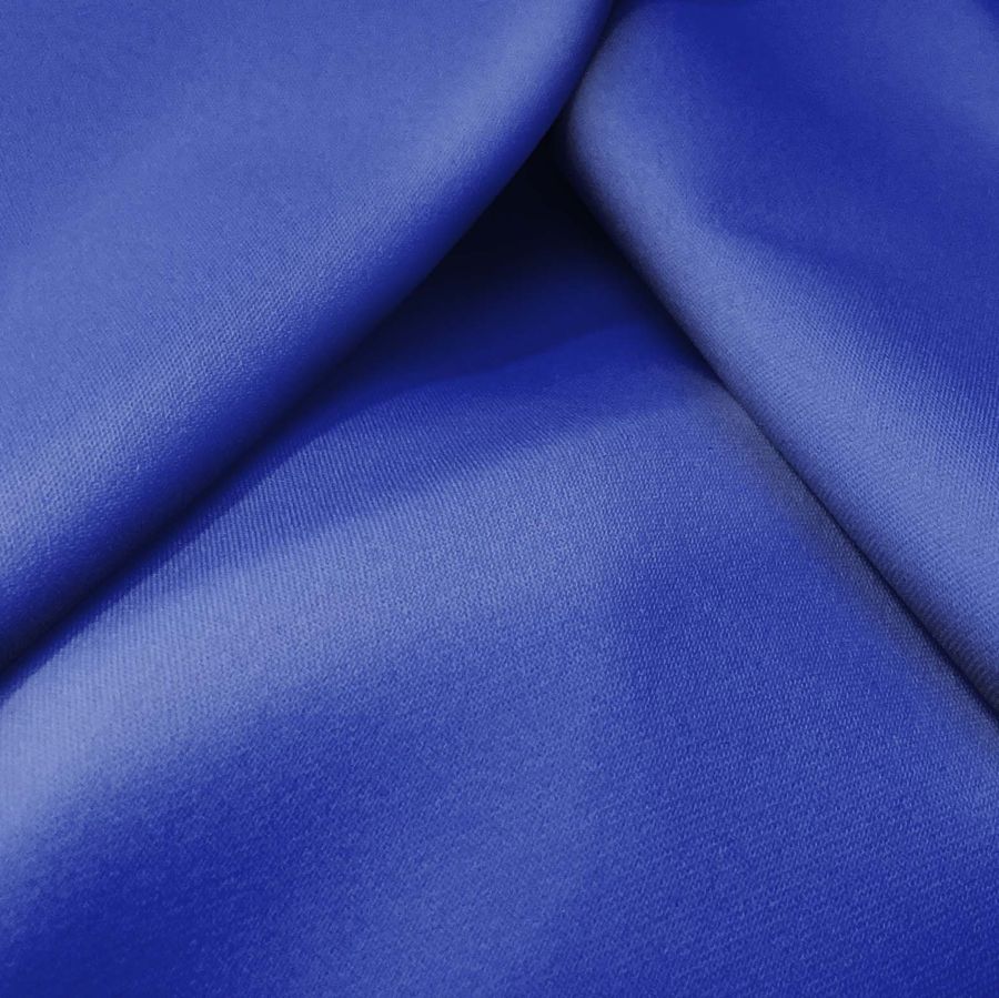 La tela base, Sarga Bielástica - Lisboa, está compuesta por un 97% de poliéster y un 3% de elastano, con un gramaje de 209 gr/m2 y un ancho de 150 cm. Su color liso impreso es Azul Klein, con un CMYK de 96 82 0 0, que proporciona un tono intenso y vibrante. Este color representa la fuerza y la confianza, transmitiendo sensaciones de vitalidad y energía. Por su naturaleza, el Azul Klein combina bien con otros tonos fuertes, como el amarillo o el naranja.