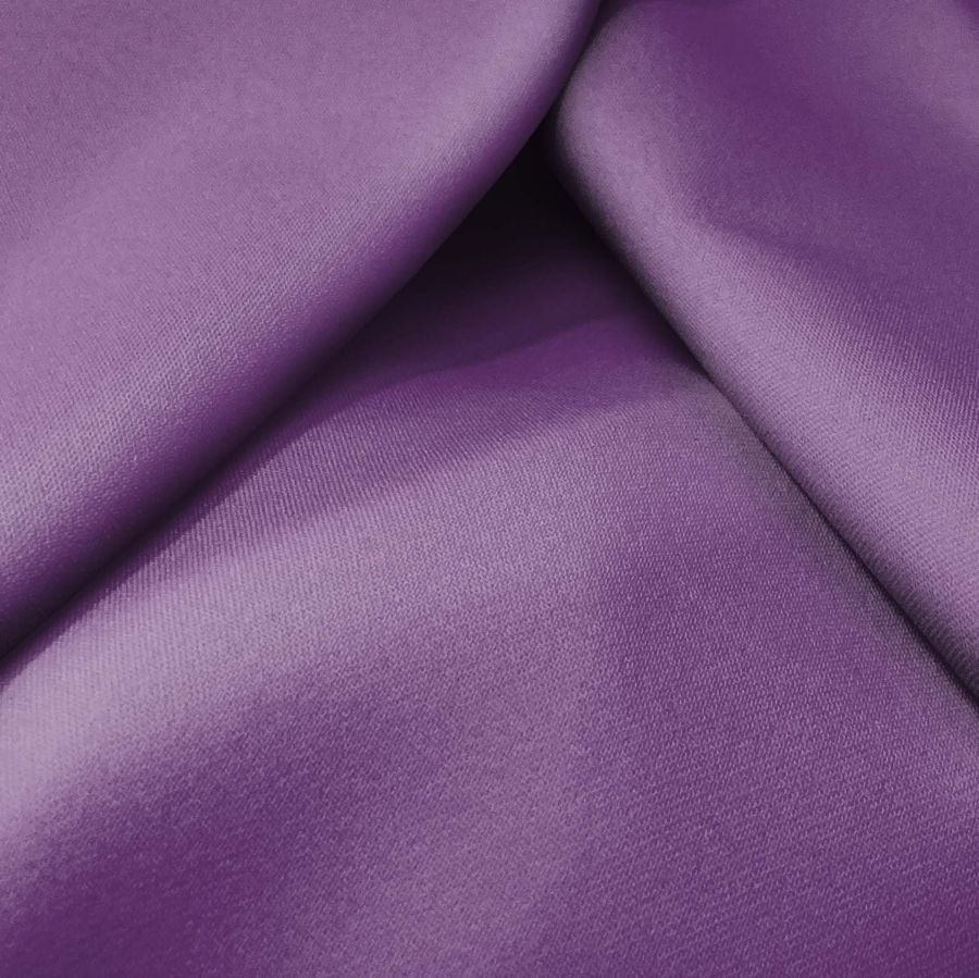 La tela base de este tejido es la Sarga Bielástica - Lisboa, compuesta por 97% POLIÉSTER y 3% ELASTANO, con un peso de 209 gr/m2 y un ancho de 150 cm. El color liso impreso es una mezcla de azul y lila, con un CMYK de 65 78 27 12, que le da una textura suave, elástica y rugosa. Este color secundario combina bien con tonos lilas y grises claros, aportando un toque de frescura y luminosidad al ambiente donde se encuentre. La tela está impresa con el color liso a una sola cara por impresión digital textil.