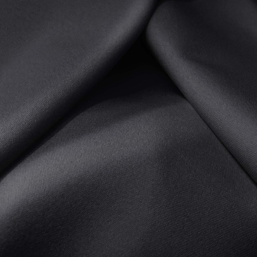 La tela base, Sarga Bielástica - Lisboa, es una sarga compuesta por un 97% de poliéster y un 3% de elastano, con un gramaje de 209 gr/m2 y un ancho de 150 cm. Su color liso impreso es Gato Negro, el cual tiene una composición CMYK de 82 74 56 81, lo que indica una mezcla de color cálida y profunda. Este color secundario se combina bien con tonos verde oscuro, marrón y rojo.
