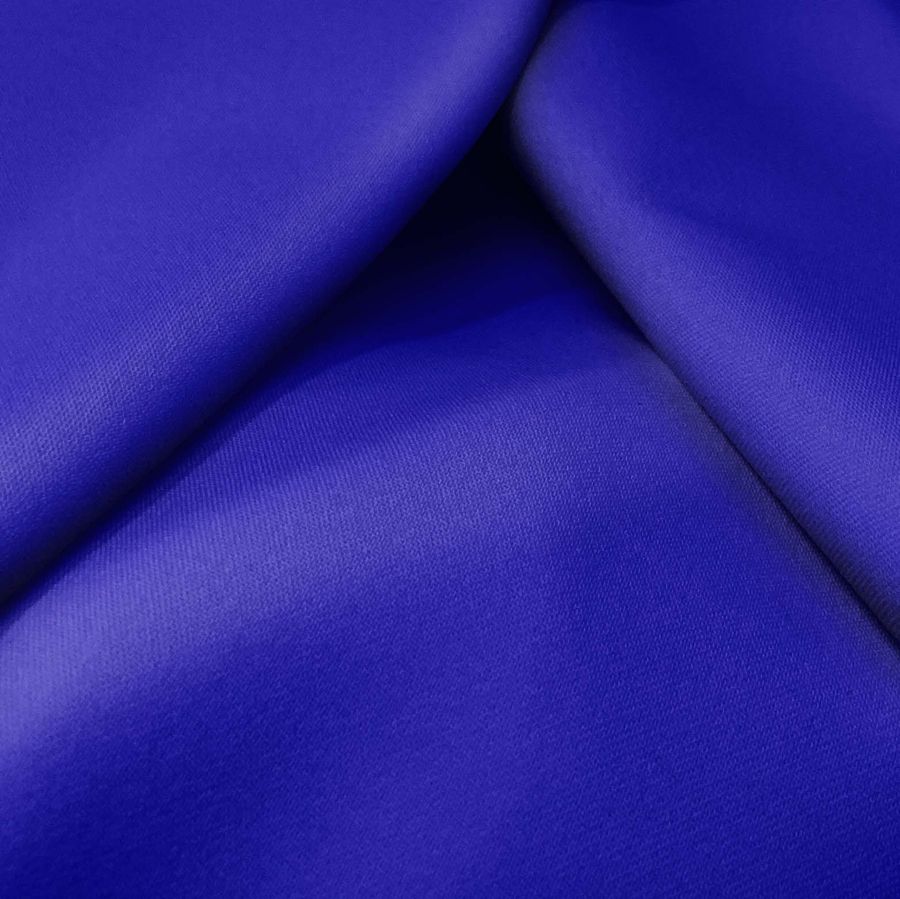 La tela base, Sarga Bielástica - Lisboa, cuenta con una composición de 97% poliéster y 3% elastano, con un gramaje de 209 gr/m2 y un ancho de 150 cm. El color liso impreso es Azul Uniforme, con un contenido de tinta cyan de 100, magenta de 93, yellow de 19 y black de 4, lo que da como resultado un CMYK de 100 93 19 4. Este tono azul combina armoniosamente con colores como blanco, negro y gris, así como también con tonalidades más cálidas como el amarillo, naranja o verde.