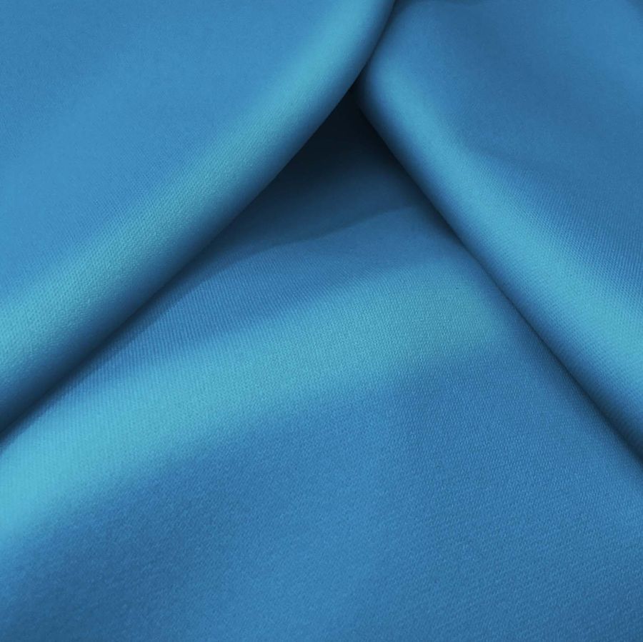 La tela base de este artículo es la Sarga Bielástica - Lisboa, con una composición de 97% poliéster y 3% elastano, un gramaje de 209 gr/m2 y un ancho de 150 cm. El color liso impreso es Azul Virgen, con un CMYK de 77 40 6 0. Este color es una tonalidad única que evoca la serenidad del cielo despejado en un día de verano. Su característica más notable es su capacidad para combinar con una amplia gama de tonos complementarios, en particular con tonos beige, café y verde. La tela está impresa con el color liso a una sola cara por impresión digital textil, lo que da como resultado un color intenso y duradero en la superficie de la tela.