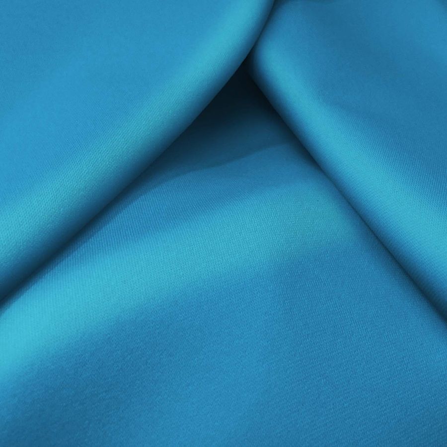 La tela base, Sarga Bielástica - Lisboa, está compuesta por un 97% de poliéster y un 3% de elastano, con un gramaje de 209 gr/m2 y un ancho de 150 cm. El color liso impreso es Azul Windows, con una tinta cyan del 77, magenta del 33, yellow del 6 y black del 0, representando un CMYK de 77 33 6 0. Este color transmite la serenidad del cielo en un día despejado y se combina perfectamente con tonos cálidos como el beige o el naranja.