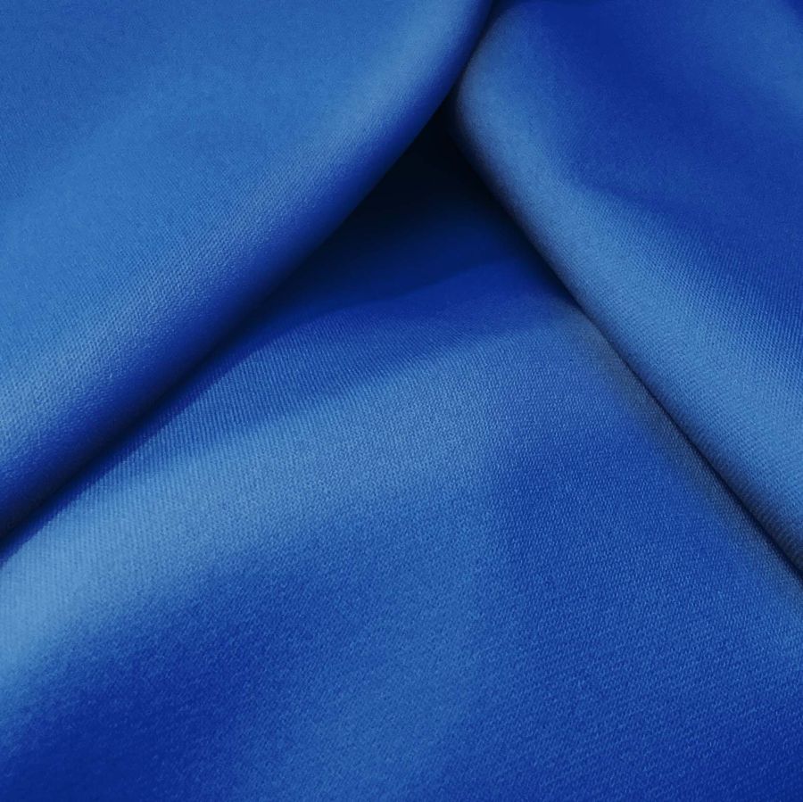 La tela base de este tejido es la Sarga Bielástica - Lisboa, con una composición de 97% POLIÉSTER y 3% ELASTANO, un gramaje de 209 gr/m2 y un ancho de 150 cm. El color liso impreso es Azul Azulete, con un CMYK de 100 78 7 0. Este color simboliza la tranquilidad, la serenidad y la calma, y técnicamente es de textura suave y elástica. Este color combina muy bien con tonos tierra, beige y gris.