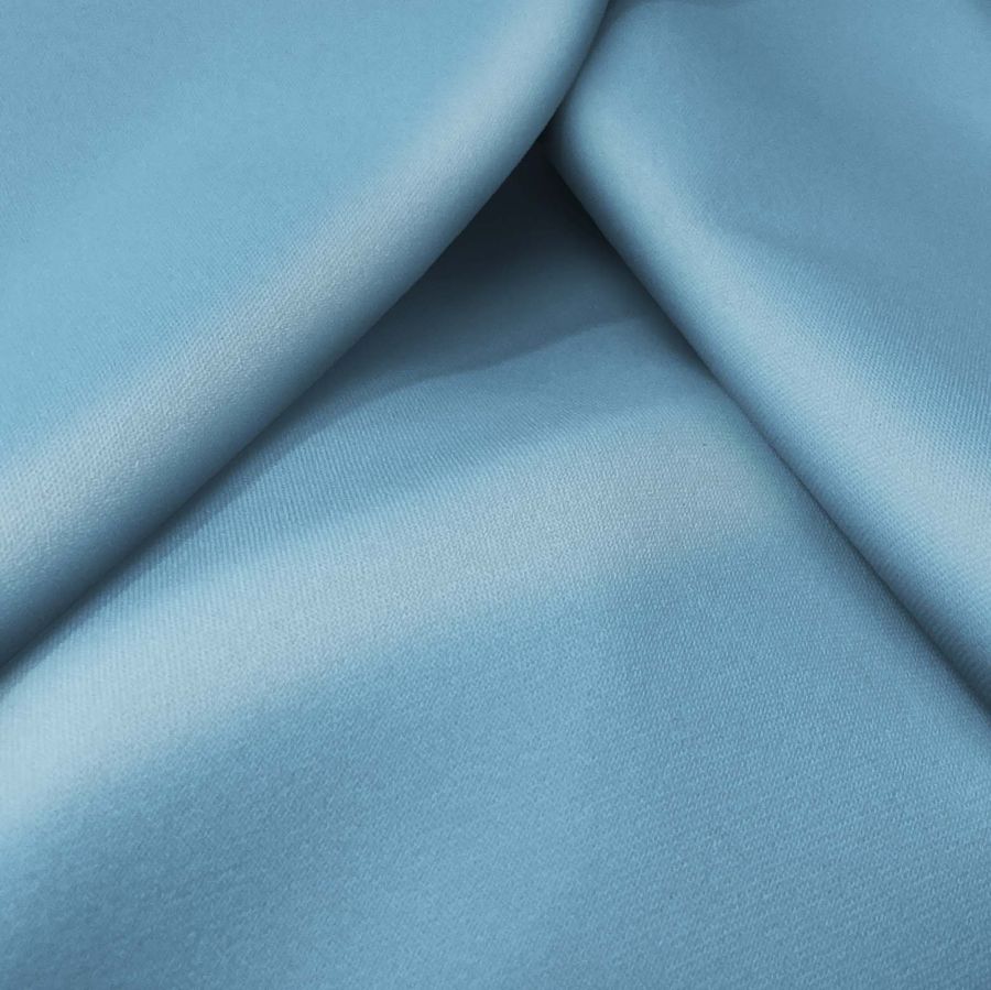 La tela base Sarga Bielástica - Lisboa presenta una composición de 97% POLIÉSTER y 3% ELASTANO con un gramaje de 209 gr/m2 y un ancho de 150 cm. El color liso impreso es un Azul Día Cielo Azul, con un CMYK de 57 20 10 0. Este color secundario simboliza la calma, la tranquilidad y la serenidad, y se combina especialmente bien con blancos, grises y tonos tierra. El tejido está impreso con este color a una sola cara por impresión digital textil.