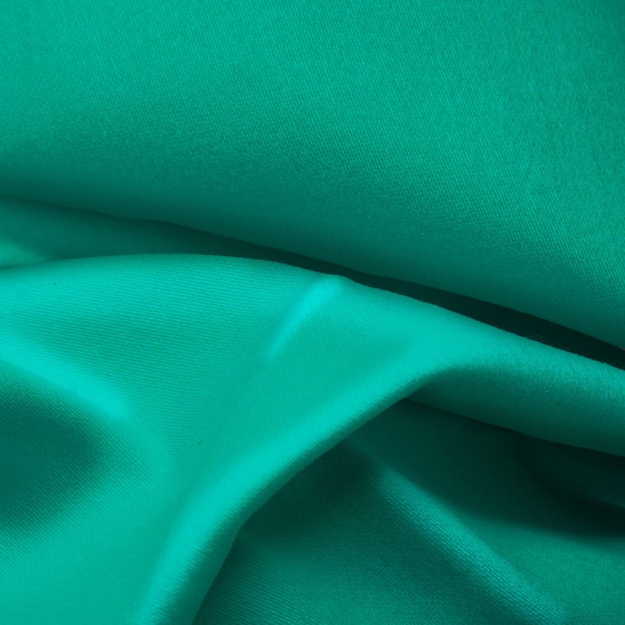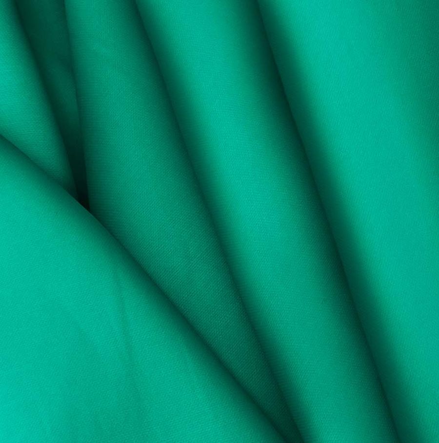 La tela base de este tejido es un satinado de algodón y elastano en color blanco tigre. El color liso impreso es un verde acuático (CMYK 82 16 62 2), que destaca por su tono fresco y relajante. Este color secundario combina con tonos neutros como el blanco y el gris, además de con colores más intensos como el rosa, el morado y el amarillo suave. Es importante destacar que la tela está impresa con una sola cara por impresión digital textil, dándole una apariencia uniforme y suave.