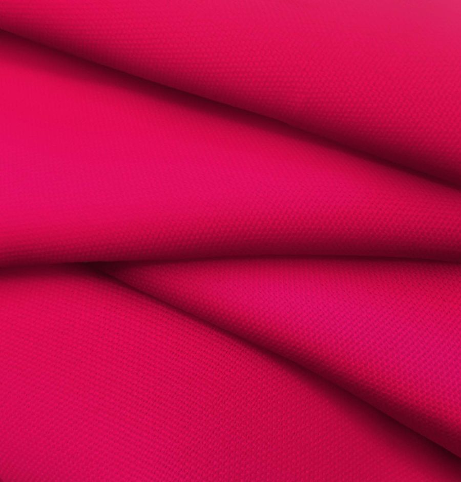 La tela base es el Tejido Hidrófugo Antibacteriano - Tromso, un tejido técnico de 100% poliéster con un gramaje de 160 gr/m2 y un ancho de 150 cm. El color liso impreso es un rojo con tonalidades de pinzón rosado, con un CMYK de 3 99 59 0. Este color secundario es simbólico del amor y la pasión, y técnicamente combina bien con tonos neutros como blanco y negro, así como con tonos de verde y azul.