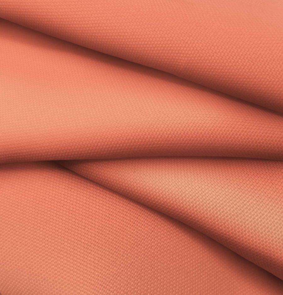 La tela base, Tejido Hidrófugo Antibacteriano - Tromso, es un tejido técnico compuesto por 100% poliéster, con un gramaje de 160 gr/m2 y un ancho de tela de 150 cm. El color liso impreso en este tejido es Rojo Annato claro, con un CMYK de 0 67 60 0. Este color secundario tiene un aire exótico gracias a su denominación, que hace referencia a la semilla utilizada como colorante natural en la Amazonía. Combina perfectamente con tonos tierra y verdosos, creando una atmósfera cálida y relajante. Resaltar que el tejido está impreso con el color liso a una sola cara por impresión digital textil, lo que significa que la calidad del color es muy alta y no hay problemas de migración del tinte.