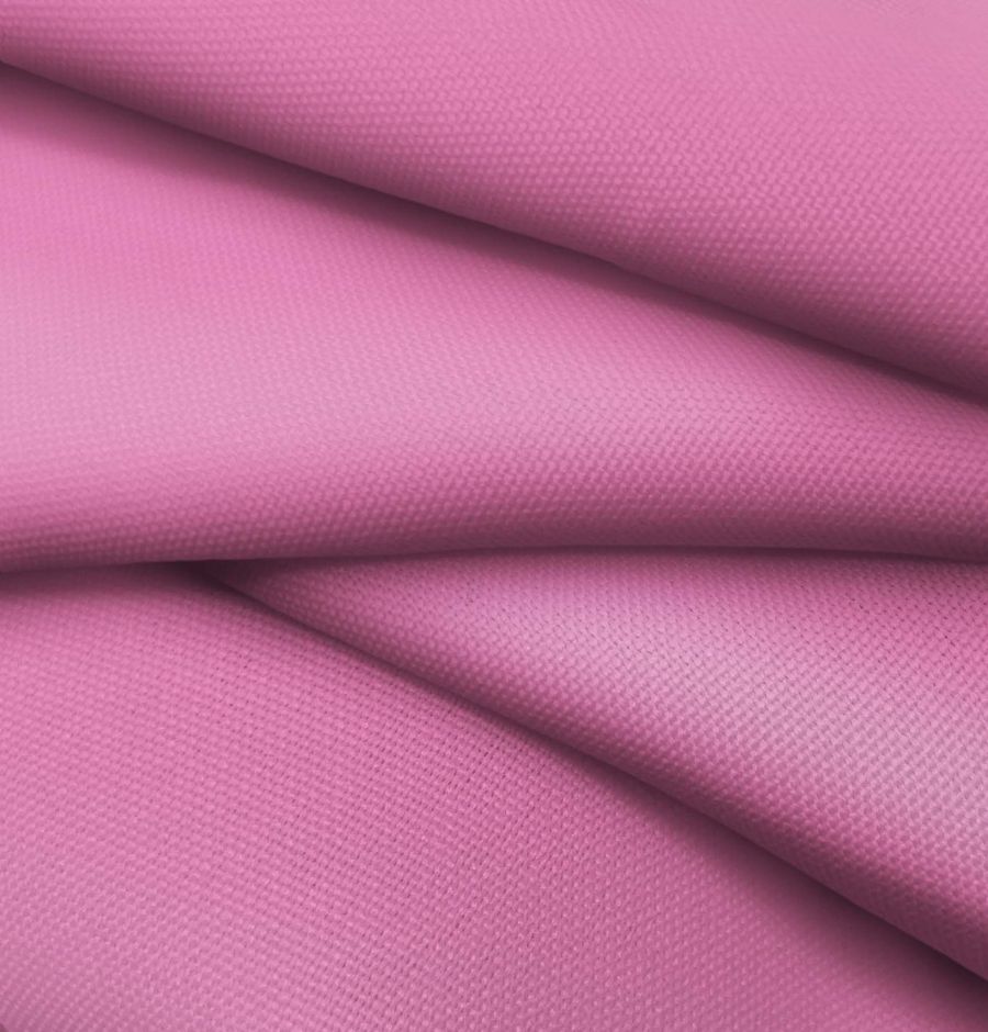 La tela base es el Tejido Hidrófugo Antibacteriano - Tromso, una tela técnica compuesta por 100% poliéster, con un gramaje de 160 gr/m2 y un ancho de 150 cm. El color liso impreso es un Rosa China, con un valor de tintas de Cyan 9, Magenta 69, Yellow 6 y Black 0, lo que da como resultado un tono profundo y vibrante. Además, esta tonalidad se combina particularmente bien con tonos suaves y pastel, así como con verdes y morados oscuros.