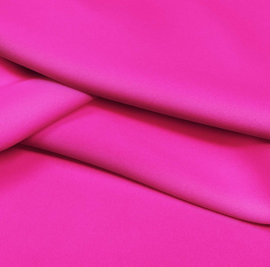 La tela base es el Tejido Hidrófugo Antibacteriano - Tromso, de 100% poliéster y un gramaje de 160 gr/m2 con un ancho de 150 cm. El color liso impreso es rosa fluorescente, con CMYK 0 90 0 0 y una tinta magenta del 90%. El color es de intensidad alta y vibrante. Se combina bien con tonos más suaves como grises claros, blancos y beige.