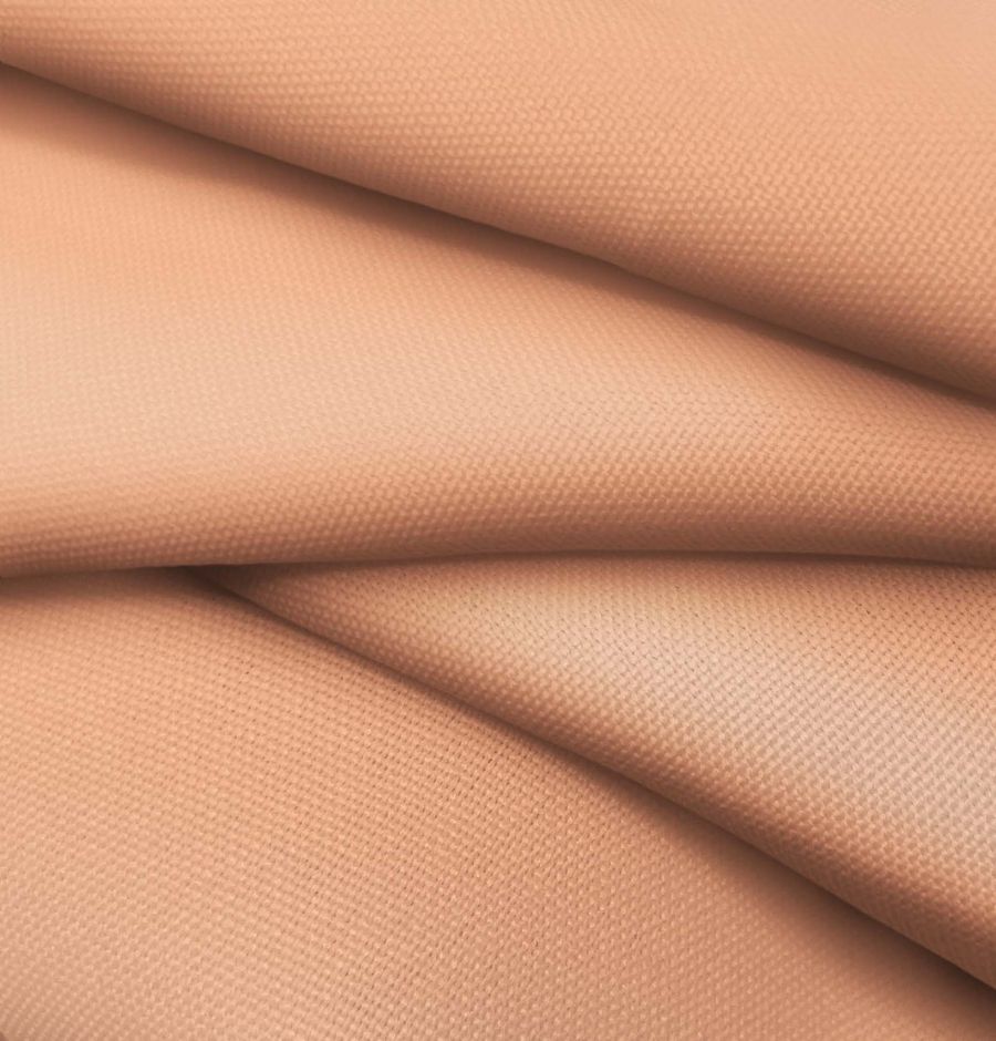 La tela base es el Tejido Hidrófugo Antibacteriano - Tromso, un tejido técnico de composición 100% POLIÉSTER, con un gramaje de 160 gr/m2 y un ancho de 150 cm. Su color liso impreso es Rosa Salmón Luz, con CMYK 0 47 51 0, lo que le confiere un tono cálido y suave. Este color secundario combina a la perfección con colores pastel, como turquesa, mint y beige. Cabe destacar que el tejido está impreso con este color liso a una sola cara por impresión digital textil.