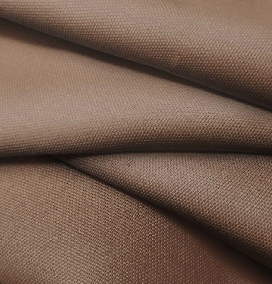 La tela base de este tejido es el Tejido Hidrófugo Antibacteriano - Tromso, una tela técnica de poliéster con un gramaje de 160 gr/m2 y un ancho de 150 cm. El color liso impreso es un hermoso tono marrón coco, con un CMYK de 40 56 62 51, que combina muy bien con tonos cálidos como el beige, el marrón oscuro y el dorado.