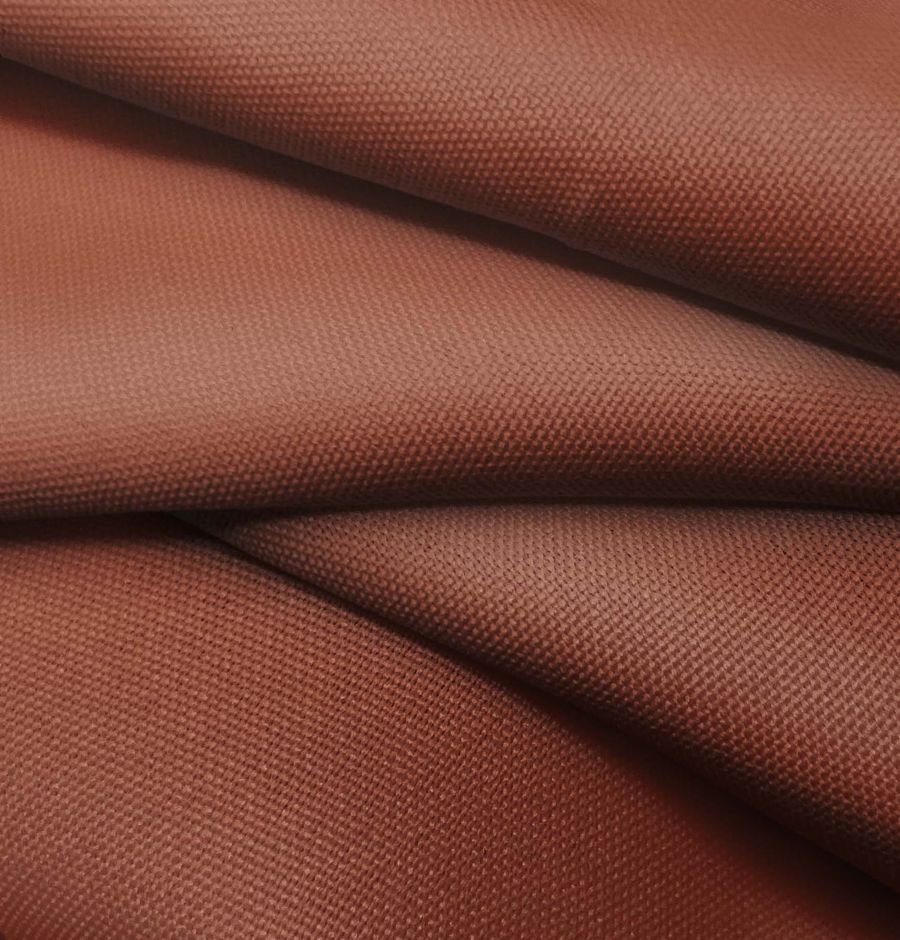 La tela base es el Tejido Hidrófugo Antibacteriano - Tromso, un tejido técnico compuesto al 100% de poliéster, con un gramaje de 160 gr/m2 y un ancho de 150 cm. El color liso impreso es marrón hígado, con un contenido de tinta cian del 35, tinta magenta del 82, tinta yellow del 82 y tinta black del 51, lo que se traduce en un valor CMYK de 35 82 82 51.