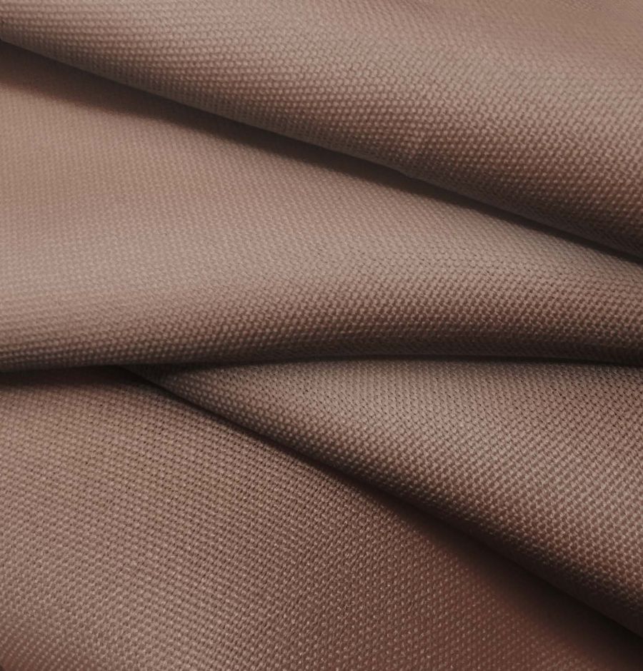La tela base es el Tejido Hidrófugo Antibacteriano - Tromso, fabricado con 100% poliéster y un gramaje de 160 gr/m2, con una anchura de 150 cm. El color liso impreso es un marrón oscuro, conocido como 'Oso café', con una composición CMYK de 40 57 58 49. Este color simboliza la estabilidad y la seguridad, generando una sensación de calidez y confort. Además, este marrón oscuro combina idealmente con colores cálidos y tierras, como el rojo oscuro, verde oliva, mostaza y naranja.