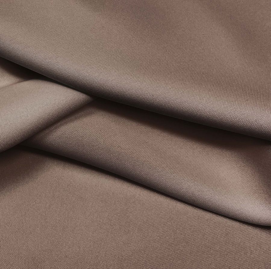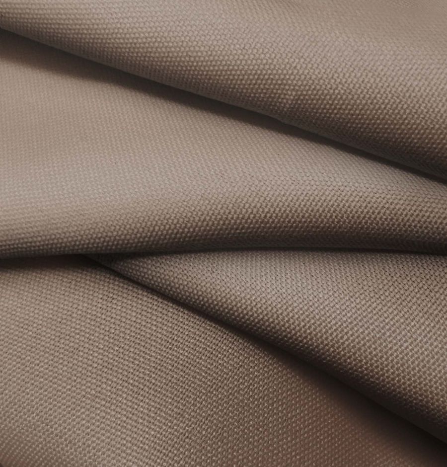 La tela base, Tejido Hidrófugo Antibacteriano - Tromso, es un tejido técnico de 100% poliéster con un gramaje de 160 gr/m2 y un ancho de 150 cm que se caracteriza por su acabado hidrófugo y antibacteriano. Presenta una textura rugosa al tacto y es de color blanco liso. El color impreso es marrón visón con valores de CMYK 44 51 54 44, lo que indica una tonalidad cálida y terrosa con ciertos matices grisáceos. Este tono se combina especialmente bien con tonalidades verdosas y grises, creando paletas elegantes y con mucho carácter.