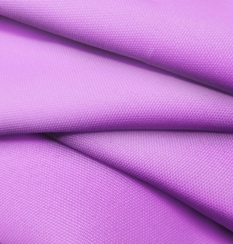 La tela base del tejido hidrófugo antibacteriano Tromso es un tejido técnico de composición 100% poliéster, con un gramaje de 160 gr/m2 y un ancho de 150 cm. Presenta un acabado impermeable e antibacteriano, y su textura es rugosa al tacto. El color liso impreso es un vibrante morado heliotropo, con un CMYK de 38 58 0 0, lo que indica que la tinta magenta es la que predomina. Este color secundario combina muy bien con otros tonos violetas y morados, así como con grises, verdes oscuros y azules marinos.