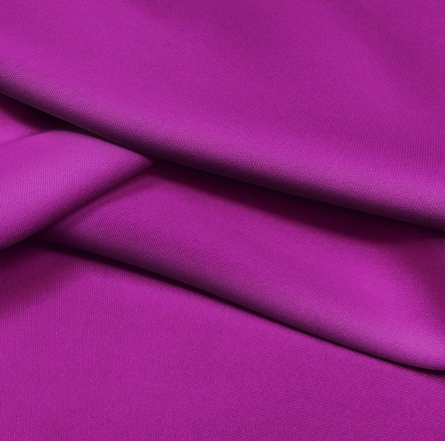 El Tejido Hidrófugo Antibacteriano - Tromso es una tela técnica compuesta al 100% por poliéster, con un gramaje de 160 gr/m2 y un ancho de 150 cm. El color liso impreso es Morado, también conocido como Purple Live, con un CMYK de 58 100 12 4, compuesto principalmente por tonos intensos de magenta y cian.