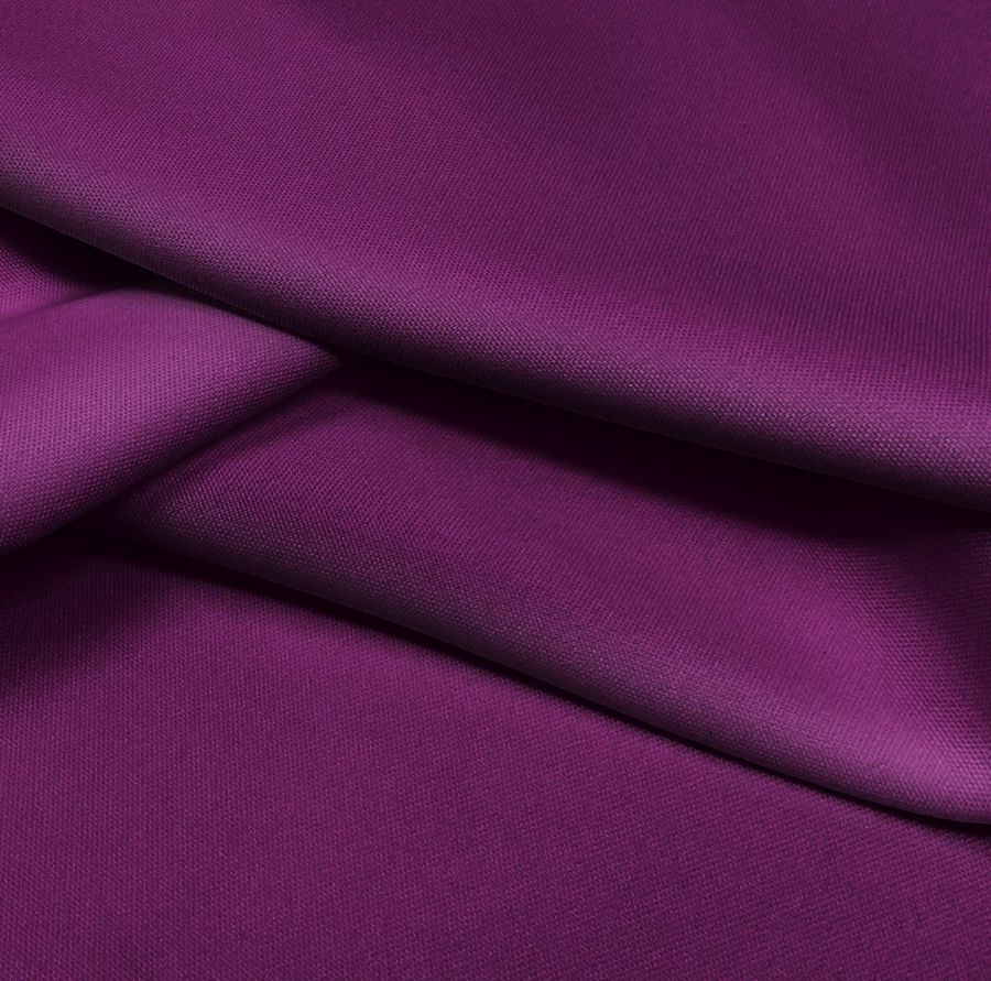 El Tejido Hidrófugo Antibacteriano - Tromso, fabricado con 100% poliéster, tiene un gramaje de 160 gr/m2 y un ancho de 150 cm. El color liso impreso es de un hermoso tono de Morado Púrpura de tiro, con valores CMYK de 70 100 33 47. Este color secundario se describe como sofisticado, creativo y evocador de misterio. El morado púrpura combina muy bien con tonos pastel, tierra y grises, creando un ambiente refinado y elegante.