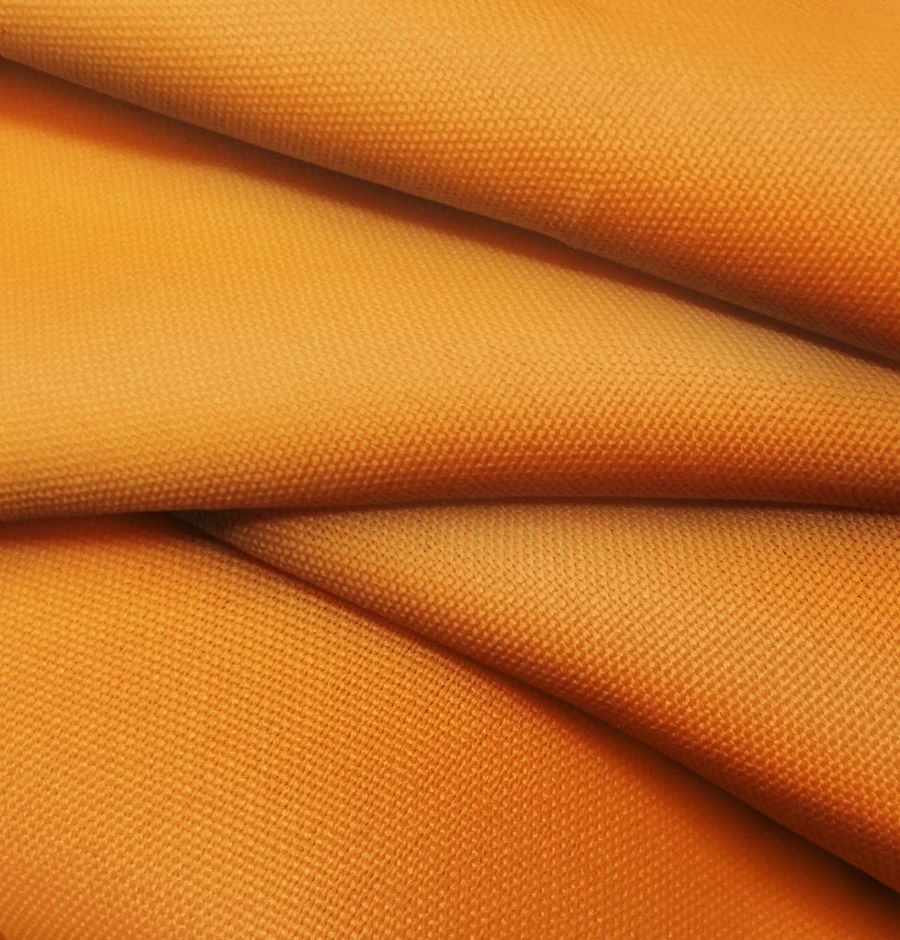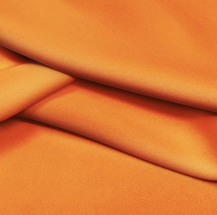 La tela base es el Tejido Hidrófugo Antibacteriano - Tromso, un tejido técnico de 100% poliéster con un gramaje de 160 gr/m2 y un ancho de 150 cm. El color liso impreso es naranja aeroespacial, con un CMYK de 0 69 100 0. Este color se caracteriza por ser llamativo y vibrante, evocando la velocidad y la modernidad, y se combina muy bien con tonos azules, verdes y grises.