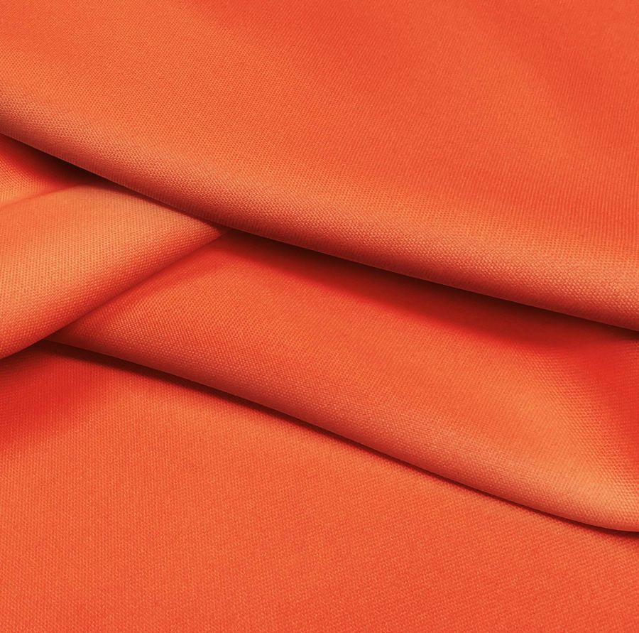 La tela base es el Tejido Hidrófugo Antibacteriano - Tromso, con una composición al 100% de poliéster y un gramaje de 160 gr/m2, de color liso impreso en naranja puro con un CMYK de 0 82 94 0. Este color secundario es simbólicamente energético, vivo y cálido, y técnicamente tiene una textura rugosa que lo hace ideal para prendas de vestir y accesorios de moda. Combina muy bien con otras tonalidades de naranja, marrones y verdes oliva, creando un estilo fresco y natural. La tela está impresa con el color liso a una sola cara por impresión digital textil.