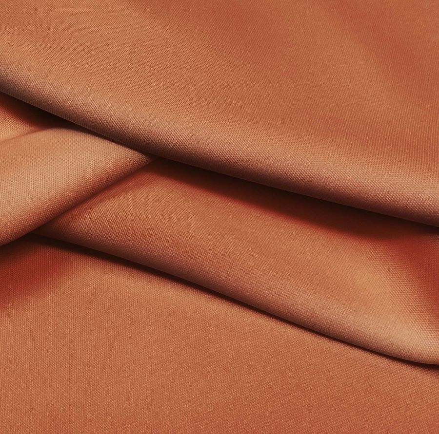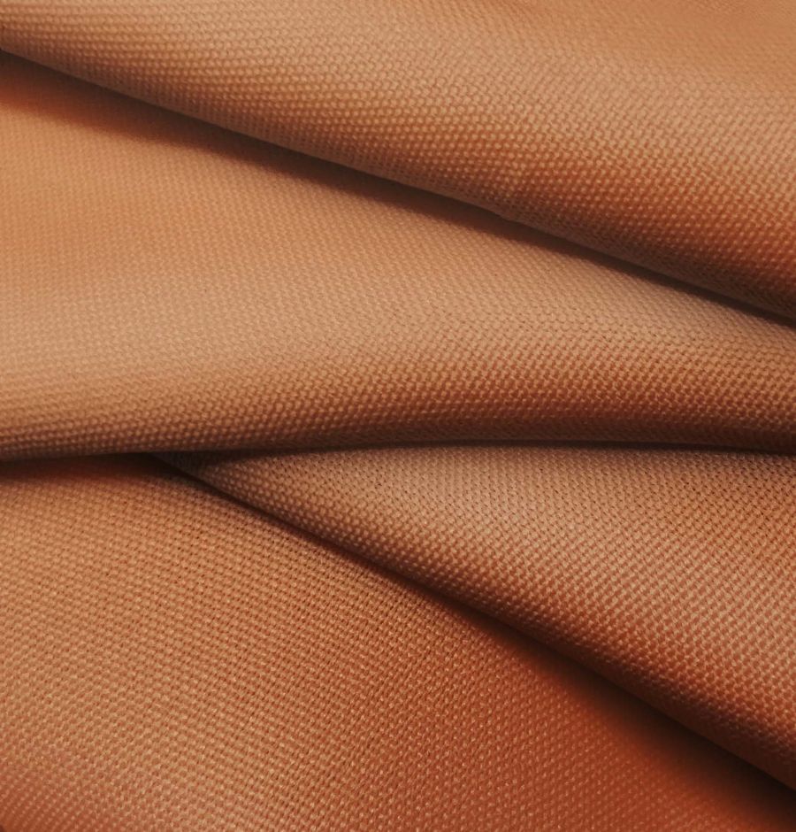 La tela base, Tejido Hidrófugo Antibacteriano - Tromso, está compuesta por un 100% de poliéster con un gramaje de 160 gr/m2 y un ancho de 150 cm. Tiene un acabado hidrofugo y antibacteriano, lo que la hace ideal para aplicaciones en moda, decoración y textil/hogar. El color liso impreso en la tela es una combinación de naranja y siena, que se obtiene a través de las tintas Cyan, Magenta, Yellow y Black con un CMYK de 27 70 84 22. Este color secundario es llamativo y cautivador, evocando la calidez del verano con su tonalidad naranja y la tierra con su tono siena. Este color liso combina perfectamente con tonos neutros como beige o blanco, y también se complementa bien con tonos azules y verdes.