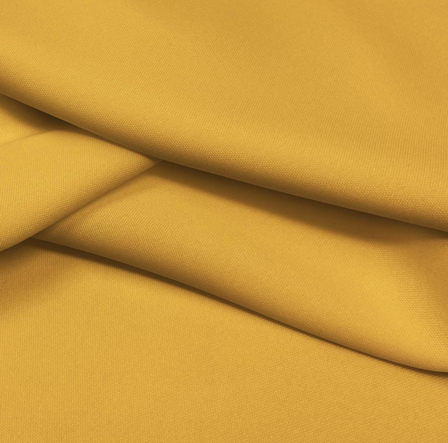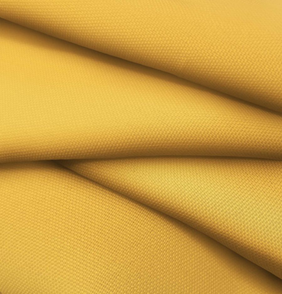 La tela base es el Tejido Hidrófugo Antibacteriano - Tromso, una tela técnica de 100% poliéster con un gramaje de 160 gr/m² y un ancho de 150 cm. El color liso impreso es un amarillo anaranjado con un CMYK de 0 38 78 0. Este color es vibrante y cálido, y se combina bien con tonos neutros como blanco, gris y marrón, así como con colores complementarios como el azul y el verde.