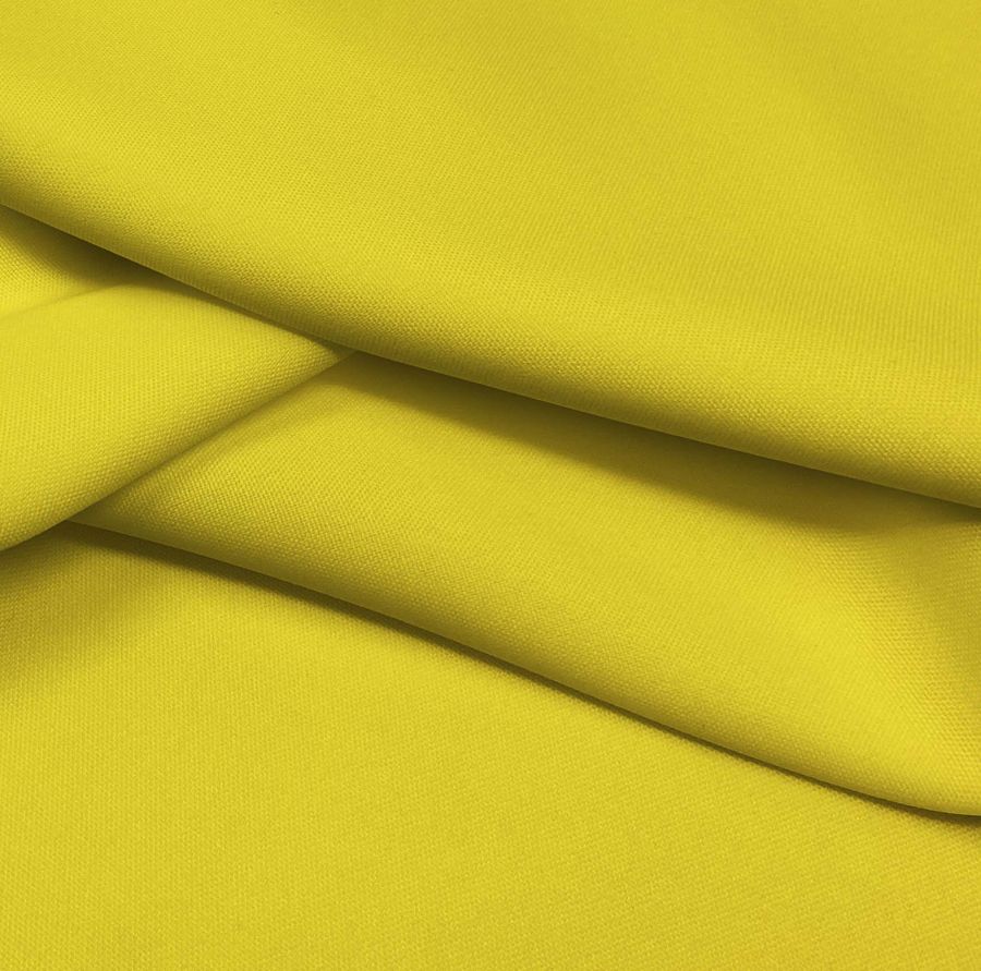 El Tejido Hidrófugo Antibacteriano - Tromso en color liso Amarillo Goya tiene una composición al 100% de poliéster con un gramaje de 160 gr/m2 y un ancho de 150 cm. El color liso impreso con la técnica de sublimación tiene una composición de 2% de tinta cyan, 10% de tinta magenta, 86% de tinta yellow y 0% de tinta black en CMYK. Este tono amarillo se caracteriza por tener una vibrante intensidad con tonos cálidos. Este color es combinado idealmente con blanco, negro, gris y tonos azules.
