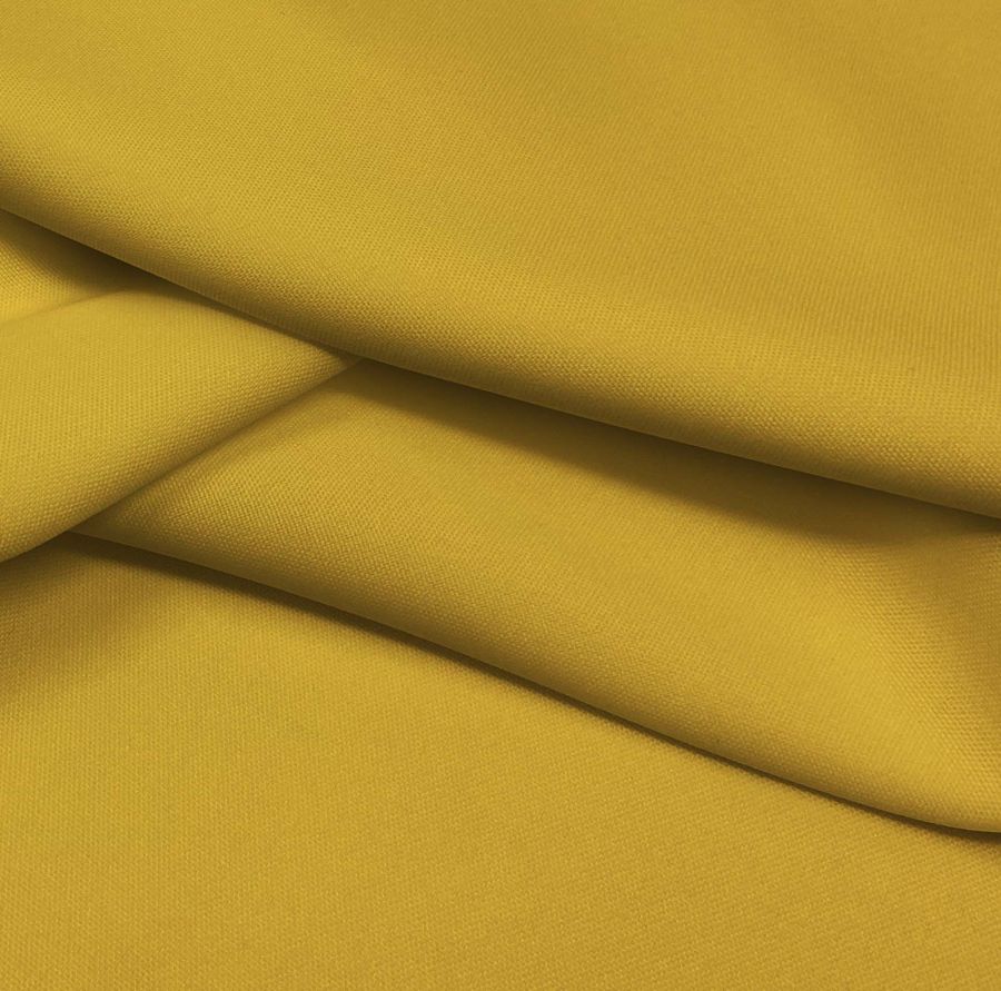 La tela base de este tejido técnico, el Tejido Hidrófugo Antibacteriano - Tromso, está compuesta al 100% de poliéster con un gramaje de 160 gr/m2 y un ancho de 150 cm. Su color liso impreso es un vibrante tono amarillo curry, que se obtiene mediante una combinación de tintas cian (16), magenta (35), amarilla (88) y negro (4), representado en el modelo de color CMYK: 16 35 88 4. Este color secundario se caracteriza por ser un tono cálido y luminoso, que refleja energía, vitalidad, creatividad e inteligencia. Es un color perfecto para combinar con otros tonos tierra, como el beige, marrón, terracota y verde oliva, y también con tonos ceniza, como el gris y blanco.