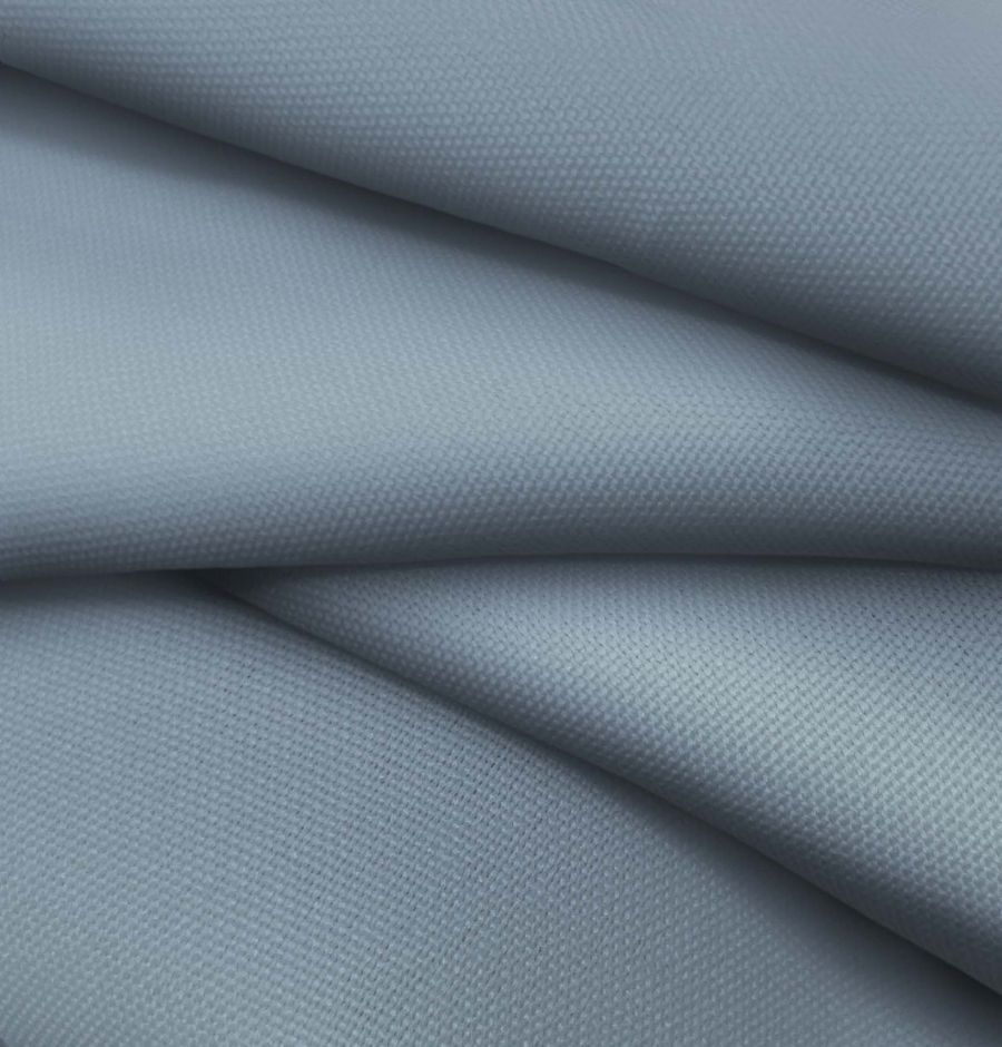 La tela base es el Tejido Hidrófugo Antibacteriano - Tromso, un tejido técnico compuesto 100% de poliéster con un gramaje de 160 gr/m2 y un ancho de 150 cm. El color liso impreso es de un gris pizarra con un contenido de CMYK de 59 40 31 14. Este color secundario es una combinación equilibrada de cian, magenta y amarillo, lo que le brinda un tono sobrio pero a la vez elegante. Combina especialmente bien con colores neutros como blancos y negros, pero también se puede complementar con marrones y azules oscuros.