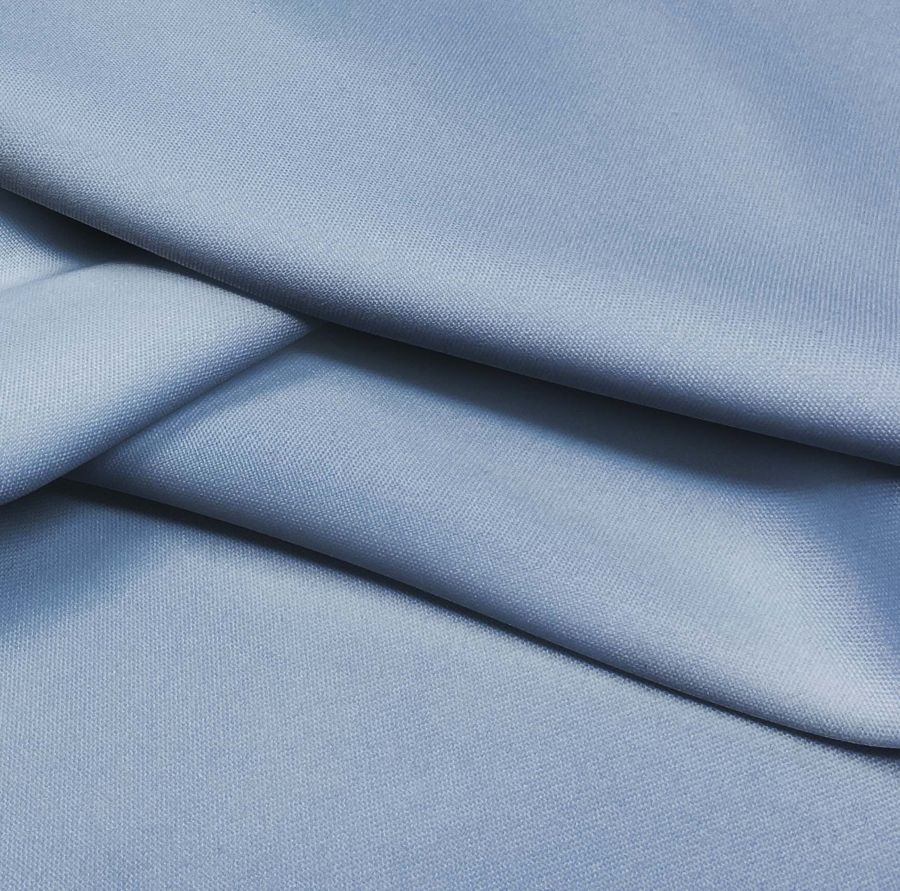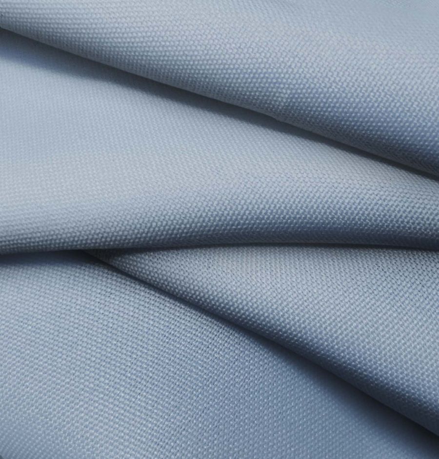 La tela base es el Tejido Hidrófugo Antibacteriano - Tromso, un tejido técnico compuesto por 100% poliéster con un gramaje de 160 gr/m2 y un ancho de 150 cm. El color liso impreso es de gris sombra azul, que se obtiene a través de una impresión digital textil con las tintas Cyam: 58, Magenta: 38, Yellow: 23 y Black: 6, con un CMYK de 58 38 23 6.