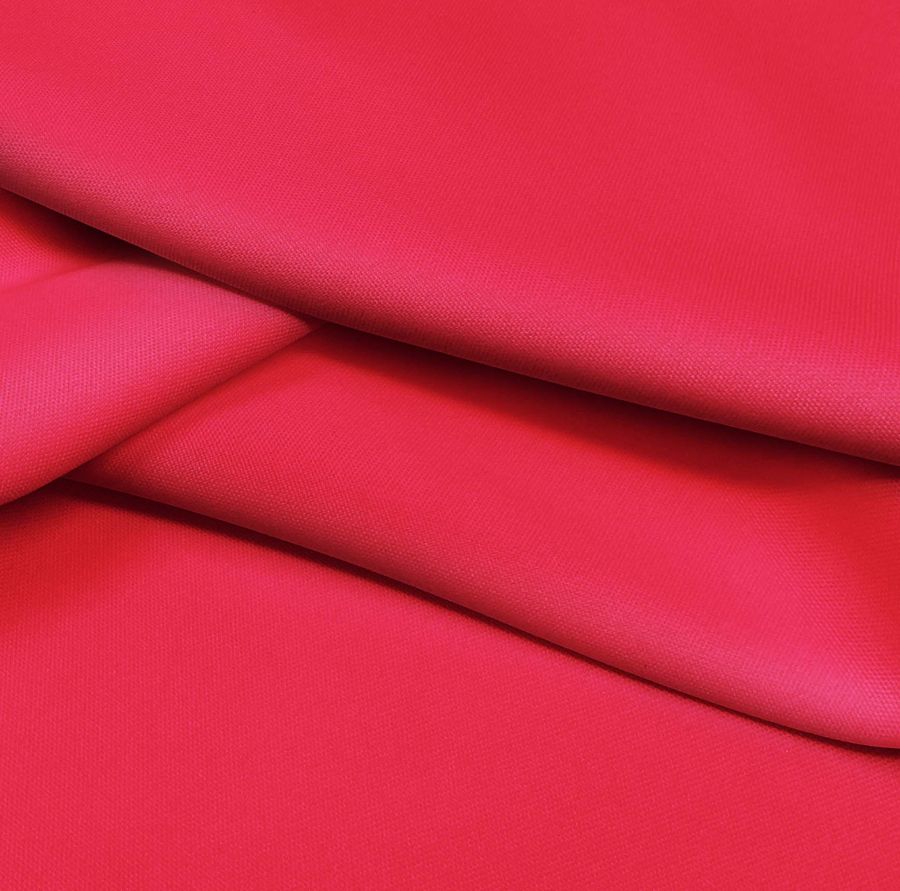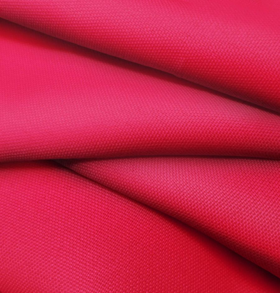 La tela base es el Tejido Hidrófugo Antibacteriano - Tromso, un tejido técnico con 100% poliéster, 160 gr/m2 y un ancho de 150 cm. Presenta un color liso impreso en rojo escarlata con una composición de 1% de tinta cyan, 100% de tinta magenta, 76% de tinta yellow y 0% de tinta black, en un CMYK de 1 100 76 0. Este color denota intensidad y pasión, es un rojo vivo que atrae las miradas y es combinable con tonos neutros como el gris, blanco y negro, y con colores claros como el beige y el rosa.