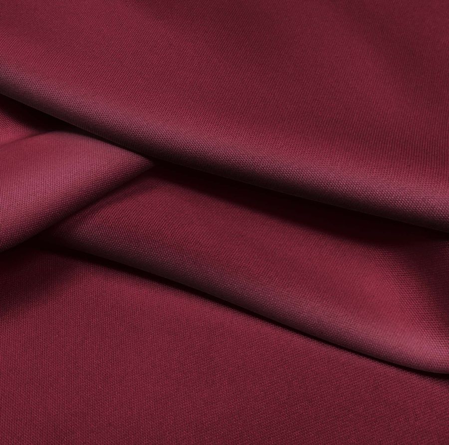 La tela base es el tejido técnico Tromso, un tejido hidrófugo y antibacteriano compuesto por 100% poliéster. Posee un gramaje de 160 gr/m2 y un ancho de 150 cm. El color liso impreso es un Rojo Escarlata Oscuro con un CMYK de 40 100 65 64, que combina especialmente bien con tonos dorados, naranjas y verdes oscuros. La tela está impresa con este color liso a una sola cara por impresión digital textil.