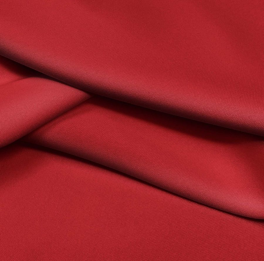 En cuanto al color secundario, se trata de un color rico y vibrante que combina especialmente bien con tonos neutros como el gris y el blanco, así como con otros tonos rojos y rosados. La textura rugosa de la tela base proporciona un interesante contraste con el color liso impreso, enfatizando su intensidad y profundidad.