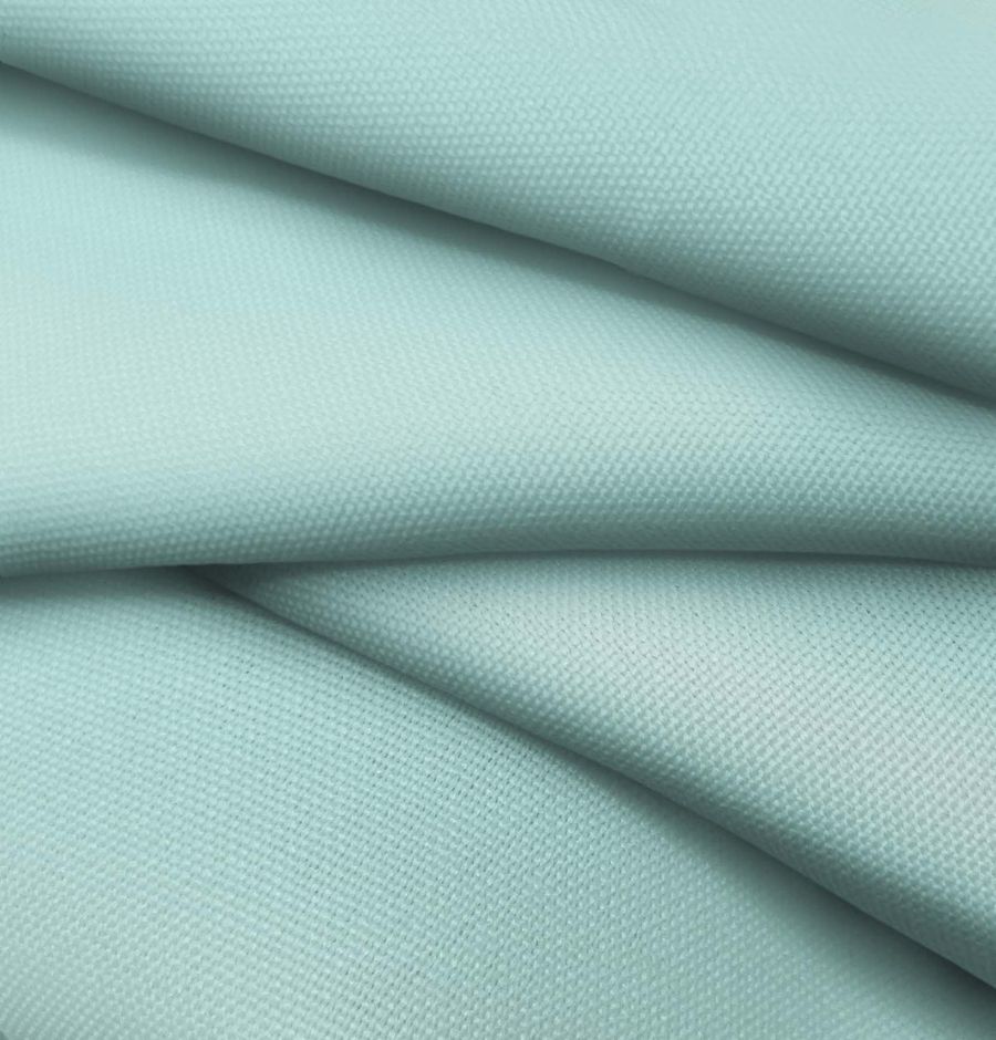 La tela base de este tejido es el Tejido Hidrófugo Antibacteriano - Tromso, un tejido técnico compuesto por 100% poliéster, con un gramaje de 160 gr/m2 y un ancho de 150 cm. El color liso impreso es un hermoso tono verde aguamarina claro, cuyo CMYK es 42 0 22 0, con una predominancia de la tinta cian. Este color refleja la frescura y la claridad del agua cristalina de un arroyo de montaña. Es un tono vivo y atemporal que combinará muy bien con otros tonos de verde y azul, así como con tonos beige o arena.
