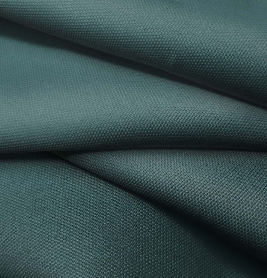 La tela base es el Tejido Hidrófugo Antibacteriano - Tromso, una tela técnica de 100% poliéster con un gramaje de 160 gr/m2 y un ancho de 150 cm. Su color liso impreso es un verde azulado con un CMYK de 84 54 55 59. Este color es ideal para combinar con otros colores azules y verdes, creando una armonía de naturaleza y frescura. La tela está impresa con un color liso a una sola cara por impresión digital textil.