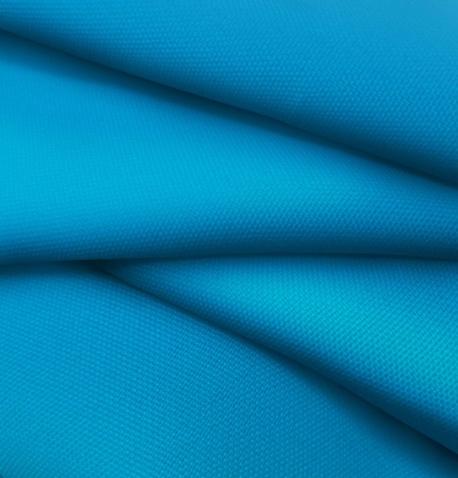 El Tejido Hidrófugo Antibacteriano - Tromso es un tipo de tela técnica compuesta 100% de poliéster con un gramaje de 160 gr/m2 y un ancho de 150 cm. El color liso impreso en esta tela es un tono azul caribe de un CMYK de 83 38 3 0. Este color secundario es vibrante y tropical evocando al mar, al sol, la playa y la alegría. El azul caribe combina fácilmente con otros tonos azules más oscuros, así como tonos fríos como el verde, el amarillo y el blanco.