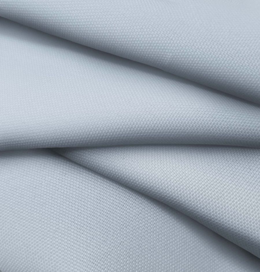 El tejido base es el Tejido Hidrófugo Antibacteriano - Tromso, 100% poliéster con un gramaje de 160 gr/m2 y una anchura de 150 cm. El color liso impreso en la tela es Azul de China, con un CMYK (Cyan, Magenta, Yellow, Black) de 37 19 11 0. Este color simboliza la confianza y la comunicación, siendo técnicamente un tono azul aciano. Se combina especialmente bien con el blanco, el gris claro y el dorado. La tela está impresa con color liso en una sola cara mediante impresión digital textil.