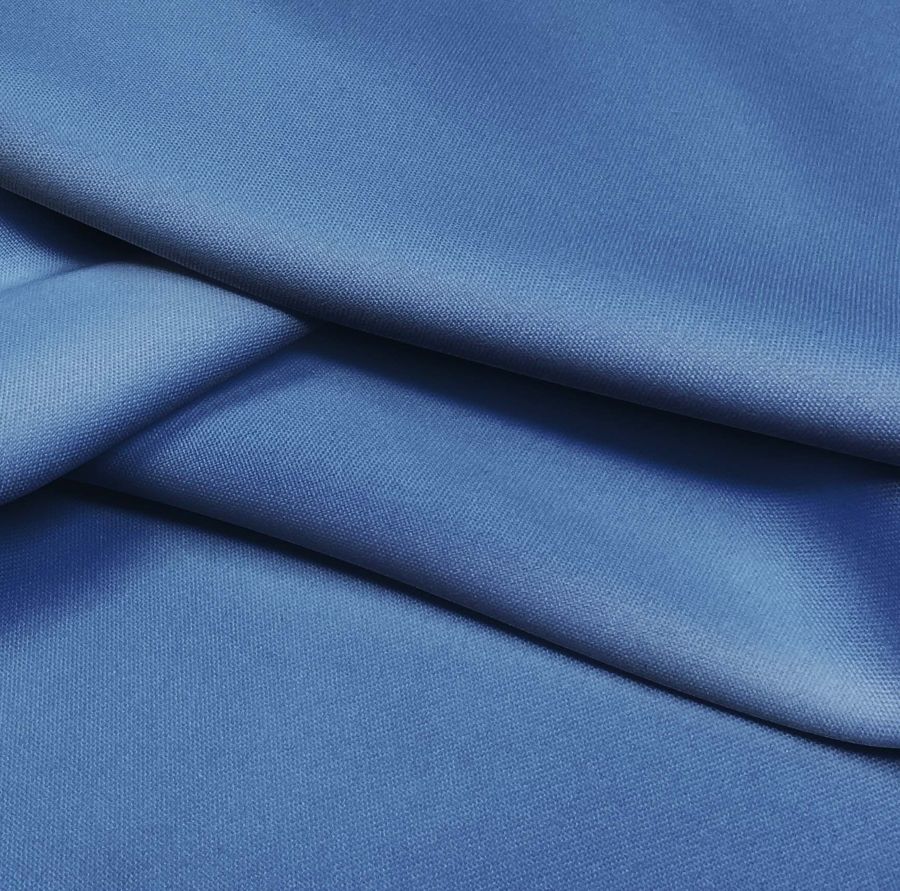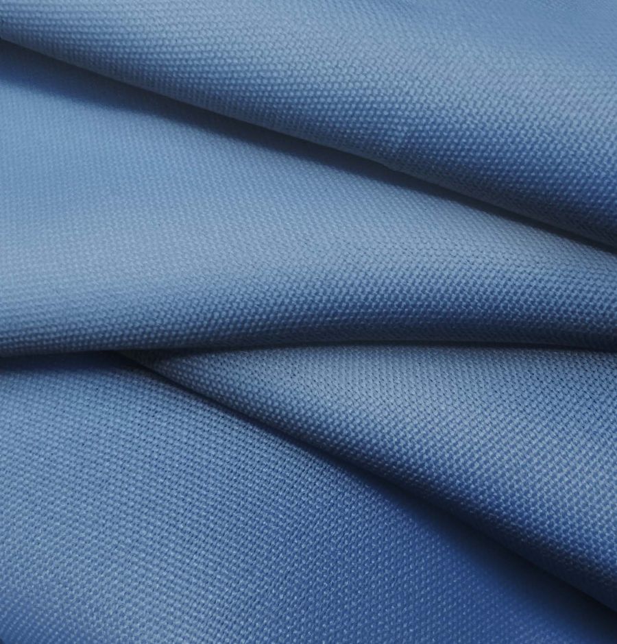 La tela base es el tejido hidrófugo antibacteriano Tromso, un tejido técnico compuesto al 100% de poliéster con un gramaje de 160 gr/m2 y un ancho de 150 cm. Su color liso impreso es un azul cerámica de Delft con un CMYK de 83 60 23 7. Este color transmite una sensación de tranquilidad y frescura, evocando la cerámica de Delft y su estilo renacentista.