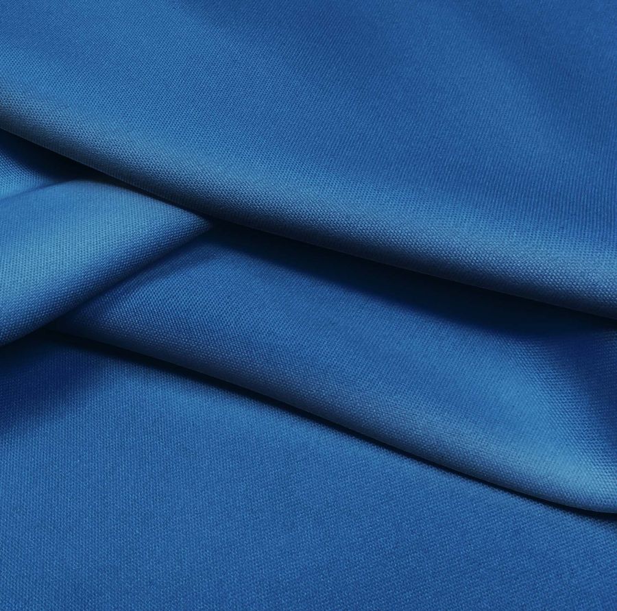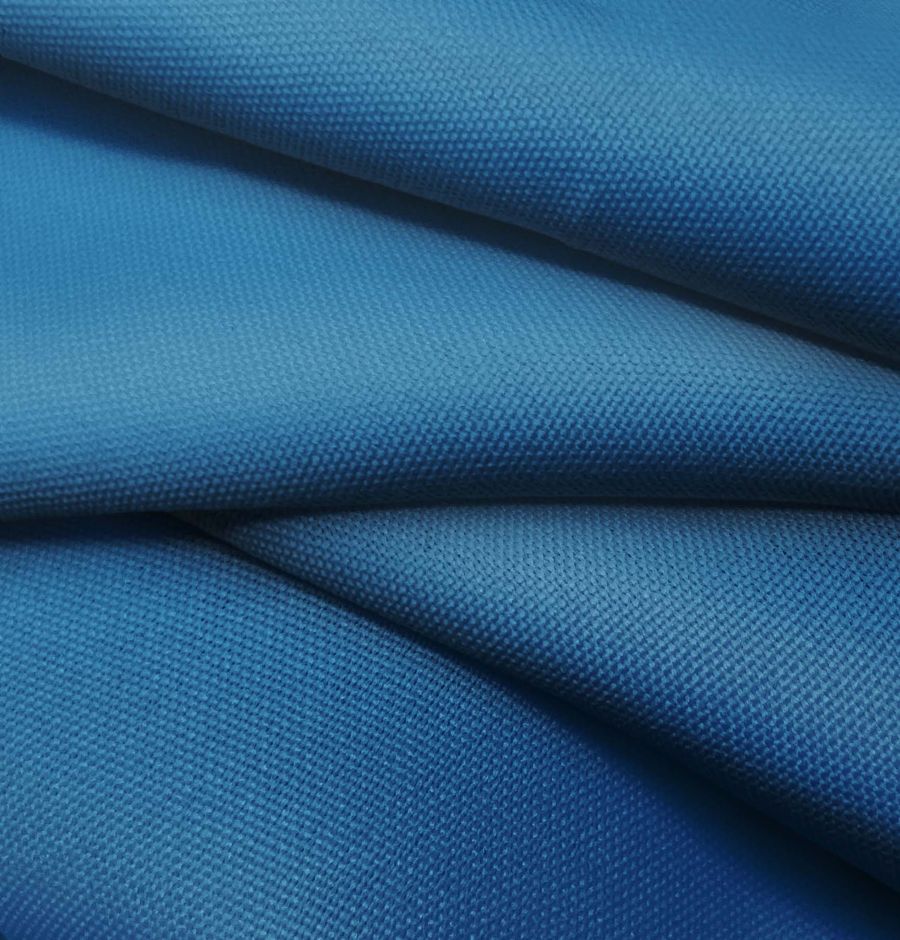 El tejido base es el Tejido Hidrófugo Antibacteriano - Tromso, una tela técnica de 100% poliéster con un gramaje de 160 gr/m2 y un ancho de 150 cm. El color liso impreso es un vibrante Azul Ultramar con un CMYK de 99 71 26 11, impreso a una sola cara por impresión digital textil. Un color secundario que se describe como refrescante y revitalizante, que combina bien con tonalidades en gris, blanco y beige.