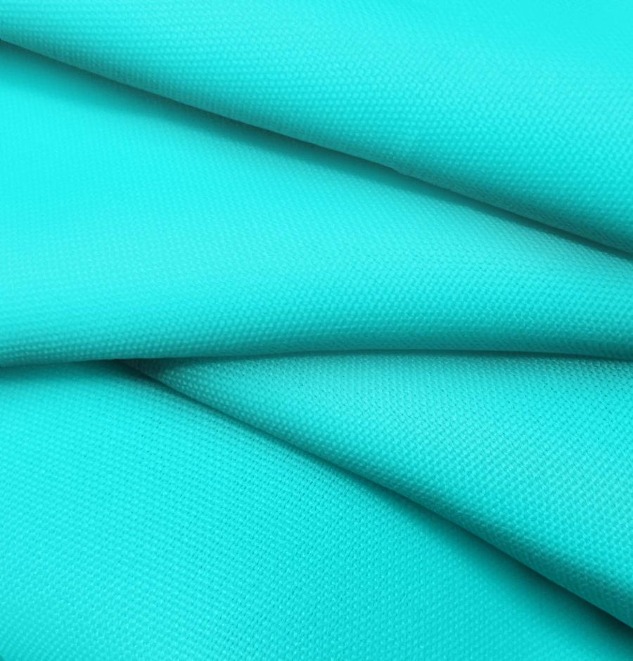 La tela base es el Tejido Hidrófugo Antibacteriano - Tromso, un tejido técnico de 100% poliéster con un gramaje de 160 gr/m2 y un ancho de 150 cm. El color liso impreso en la tela es Azul Cian, cuyo contenido del CMYK es de 57 0 15 0, compuesto por un alto porcentaje de tinta Cyan y menor cantidad de tinta Yellow. Este color es simbólico de la frescura y la tranquilidad, a la vez que representa la estabilidad y la serenidad. A su vez, combina a la perfección con tonos neutros como el blanco y el gris, así como con otros tonos de azul.