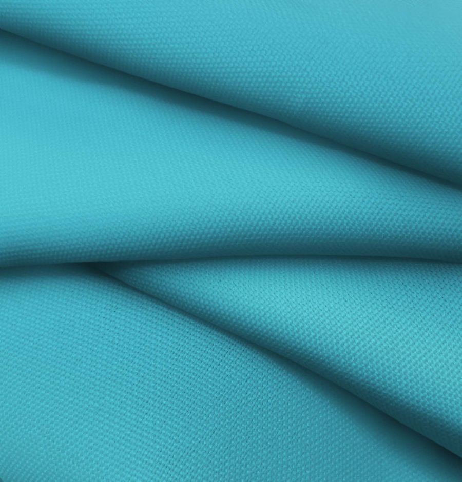 La tela base es el Tejido Hidrófugo Antibacteriano - Tromso, un tejido técnico de 100% poliéster con un gramaje de 160 gr/m2 y una anchura de 150 cm. El color liso impreso es un azul intenso, con un CMYK de 71 16 22 1. Este color cian opaco es una mezcla de un azul más oscuro con un verde intenso, lo que le da un aspecto relajante y fresco. Combina de manera espectacular con tonos verdes y grises claros, proporcionando una sensación de naturalidad y armonía.