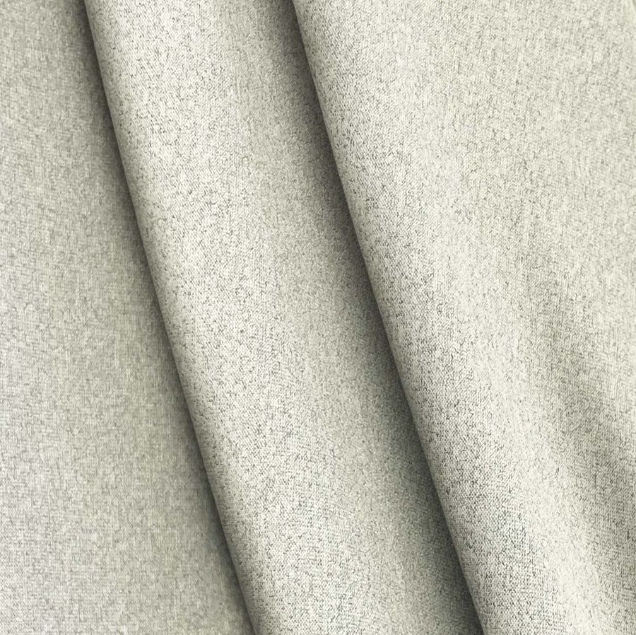 El tejido está impreso con el color liso a una sola cara por impresión digital textil, lo que significa que la tinta se imprime solo en uno de los lados de la tela. En cuanto a las características generales, la tela tiene una textura jaspeada y opaca, y cuenta con un acabado transpirable que permite la ventilación de la piel. En cuanto al color, el blanco y el hueso se combinan en una tonalidad suave y delicada.