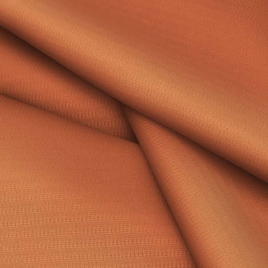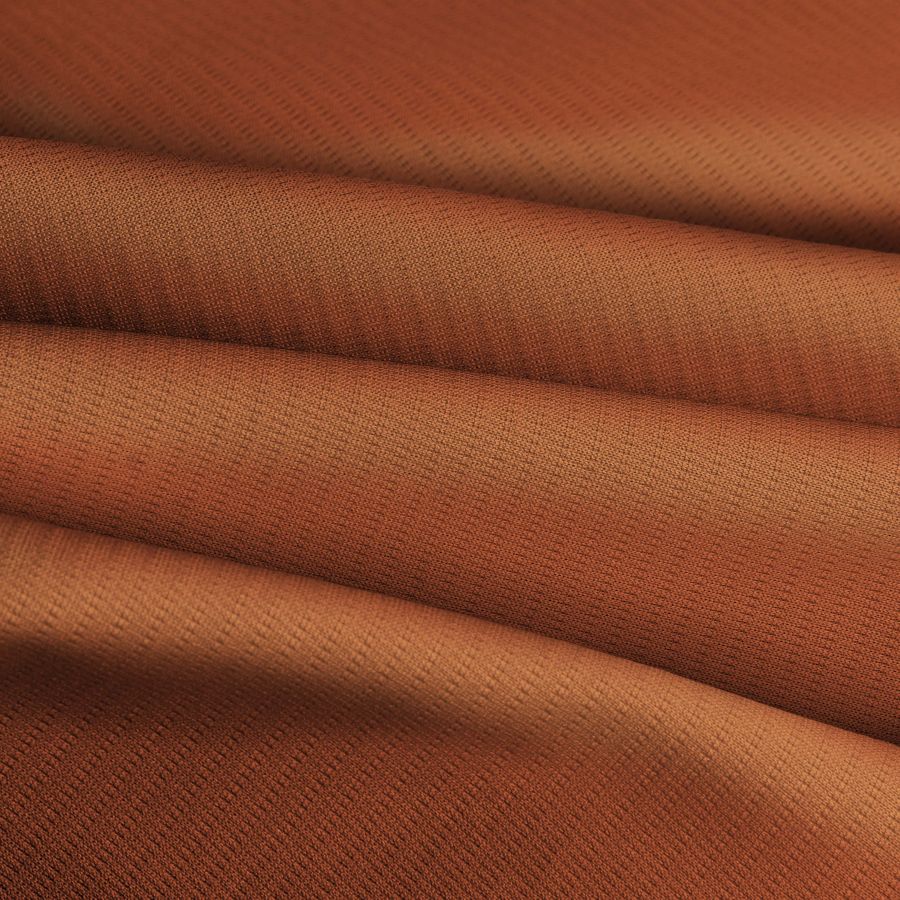 La tela base del tejido técnico transpirable - Fresh es un tejido técnico de poliéster con un gramaje de 135 gr/m2 y un ancho de 150 cm. Su composición del 100% de poliéster le confiere una alta resistencia, durabilidad y fácil cuidado. El color rojo bermellón medio impreso en la tela aporta un vibrante y llamativo toque de color al tejido. El CMYK del color liso es 18-70-79-6, lo que indica una alta intensidad de los colores cian, magenta y amarillo en la mezcla, y un bajo nivel de tinta negra.