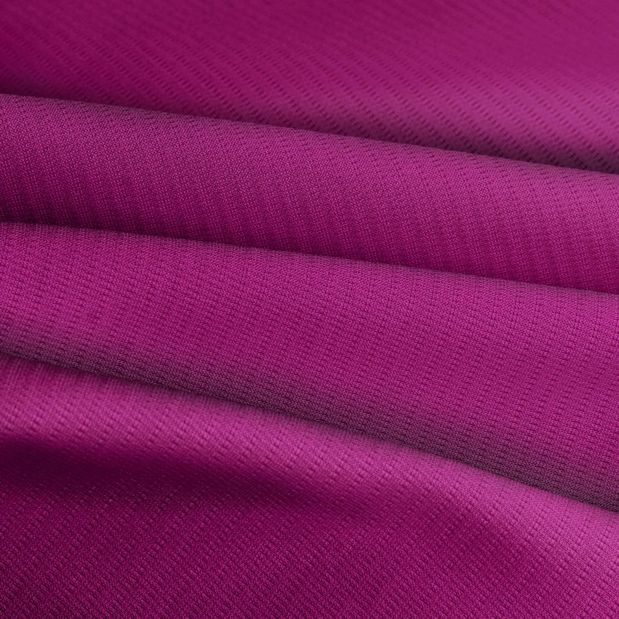 La tela base, Tejido Técnico Transpirable - Fresh, está compuesta completamente de poliéster con un gramaje de 135 gr/m2 y un ancho de 150 cm. Su color liso impreso es un rojo burdeos con una composición de tinta CYMK de 43% de cian, 100% de magenta, 24% de amarillo y 21% de negro, lo que lo convierte en un color intenso y vibrante. Este color secundario es muy versátil y se combina bien con otros colores, especialmente con tonos neutros como el blanco, el gris y el negro.