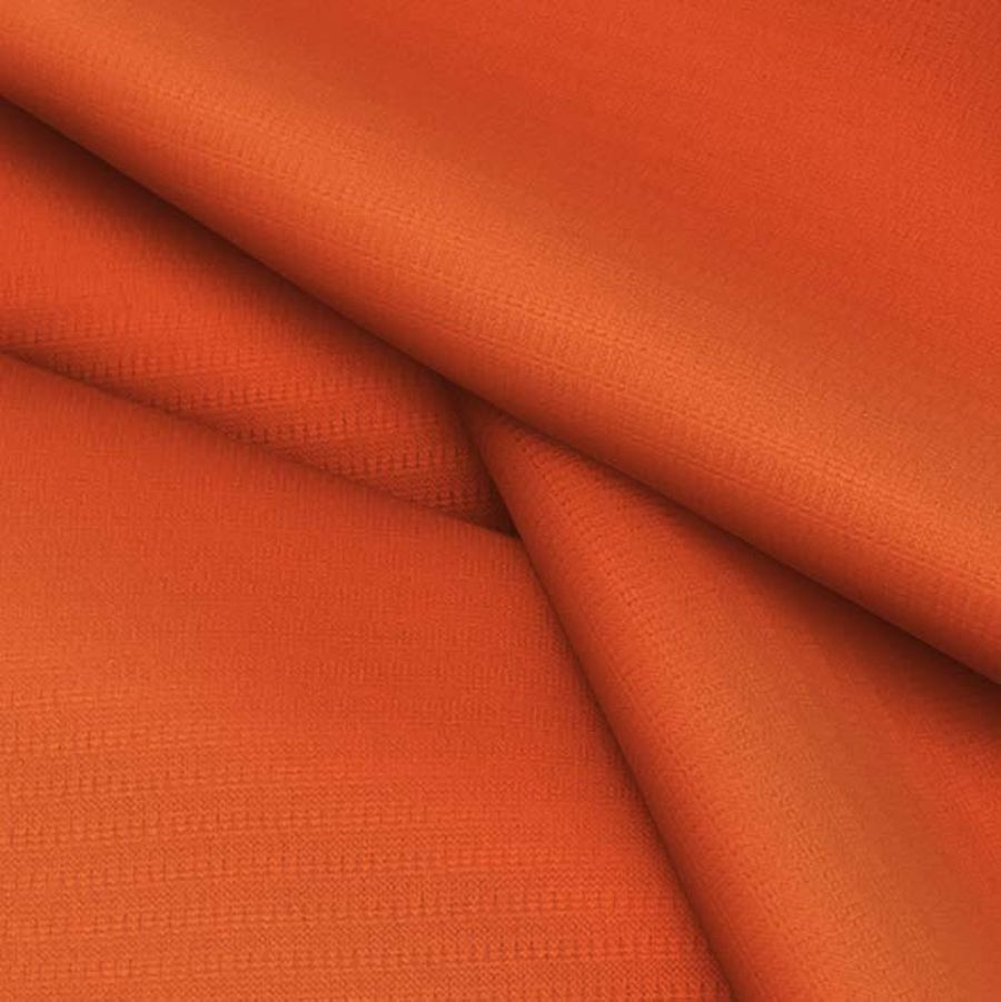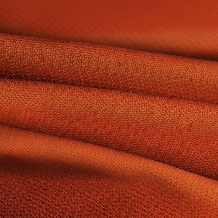 La tela base es el Tejido Técnico Transpirable - Fresh, un tejido técnico con una composición de 100% poliéster, un gramaje de 135 gr/m2 y un ancho de tela de 150 cm. El color de este tejido liso impreso es un rojo anaranjado intenso, reflejado en el CMYK 0 82 89 0. Este color secundario simboliza la energía, la pasión y la emoción, y combina armoniosamente con otros tonos cálidos como el amarillo, naranja y rosa. Es importante destacar que el tejido está impreso con el color liso a una sola cara por impresión digital textil, lo que significa que la apariencia del tejido varía según el lado de la tela que se observe.